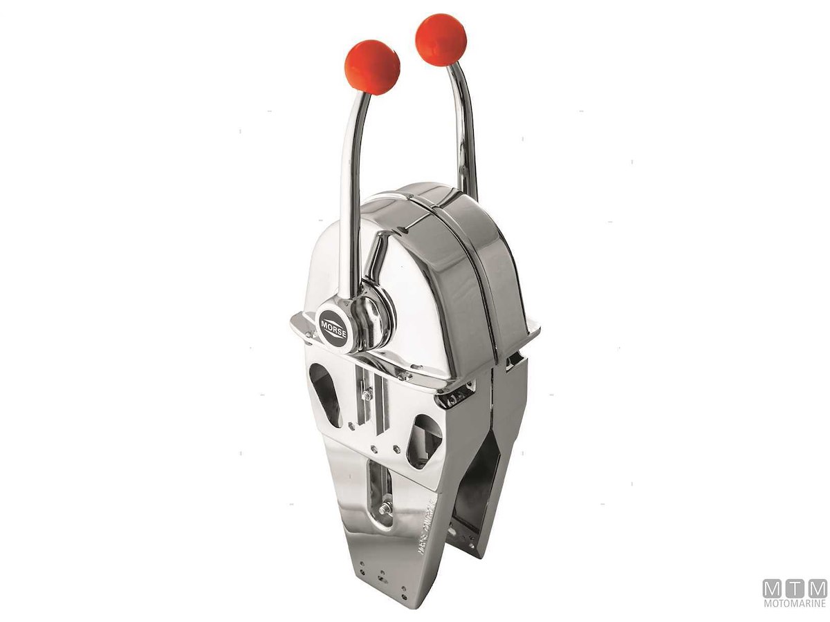 Comando a doppia azione per il controllo di gas e marce su motori entrobordo ed entro/fuoribordo. Leva e corpo in lega inossidabile cromata, montaggio su plancia.Utilizza cavi C2 / C8 / C33 / MACHZero.