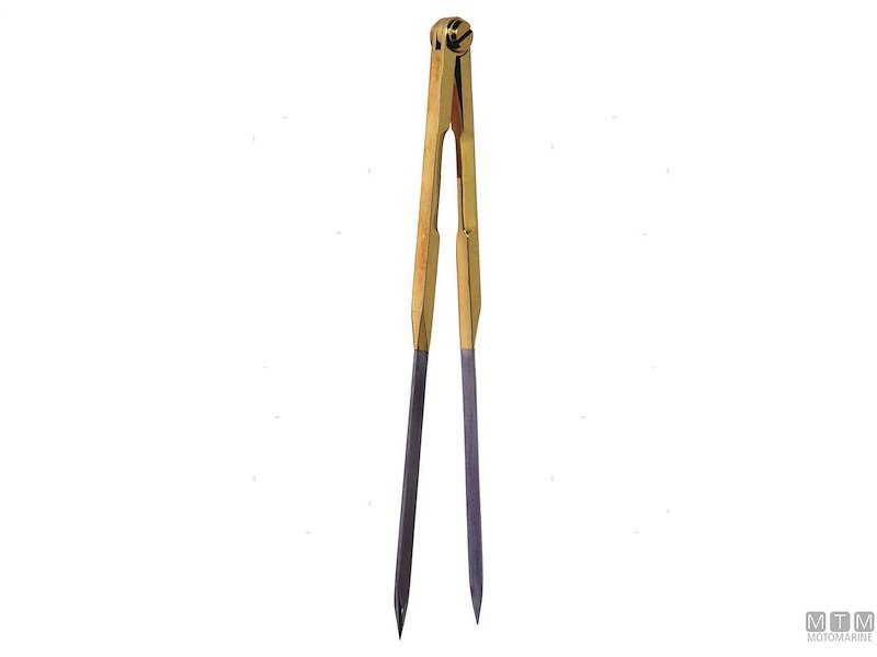 Elegante compasso per il carteggio nautico in Ottone lucido con punte in Acciaio Inossidabile. Cod.: 2439319 mm: 200