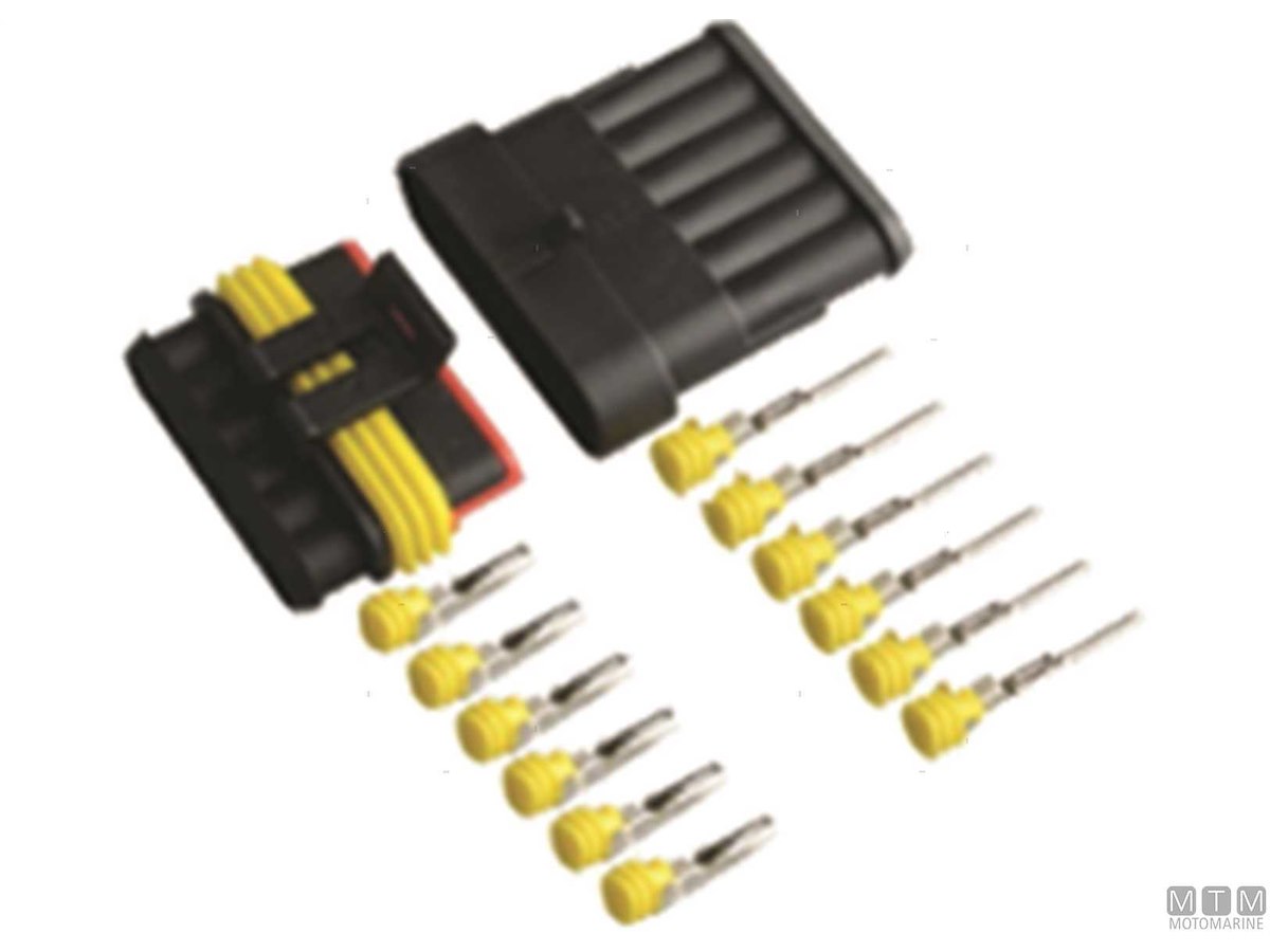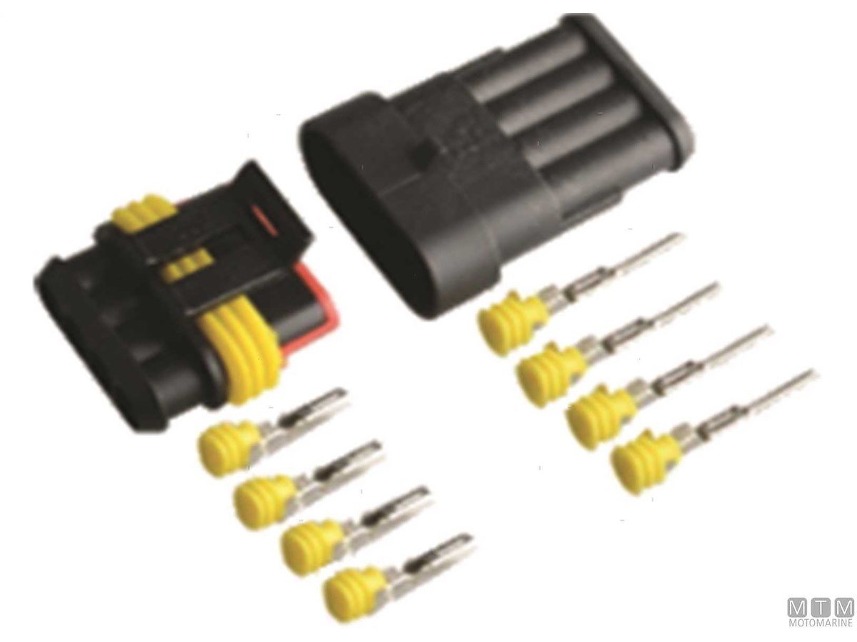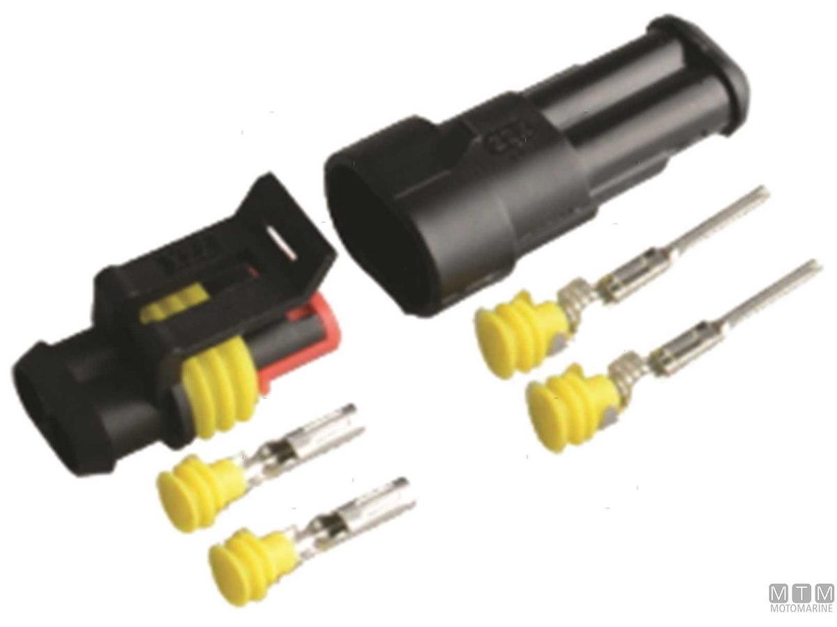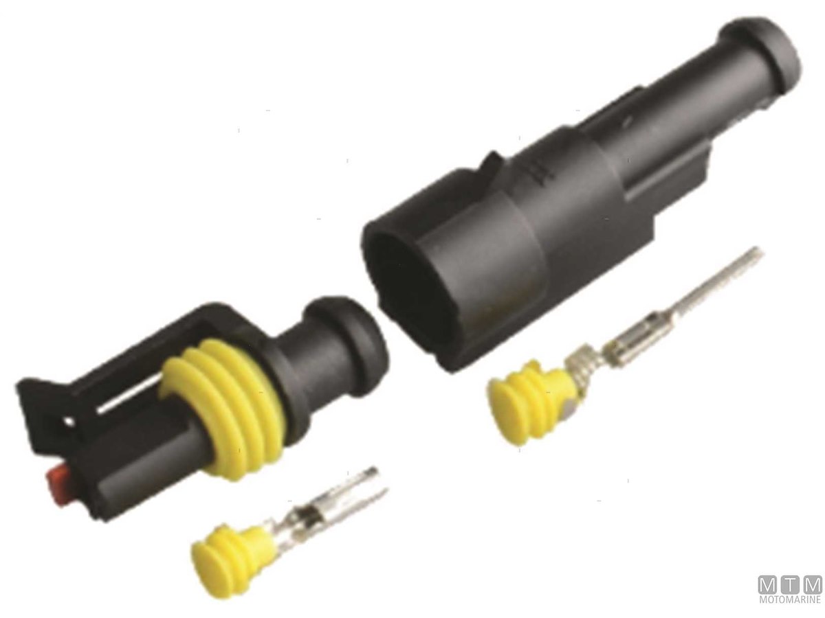 Connettore impermeabile ad innesto rapido completo di terminali per cavi 0,5<>1,5 mm2 max 14A. Per impianti elettrici dove c'è la necessità di connettere/disconnettere dispositivi che si cambiano frequentemente come pompe di sentina, strumentazione e sensori.