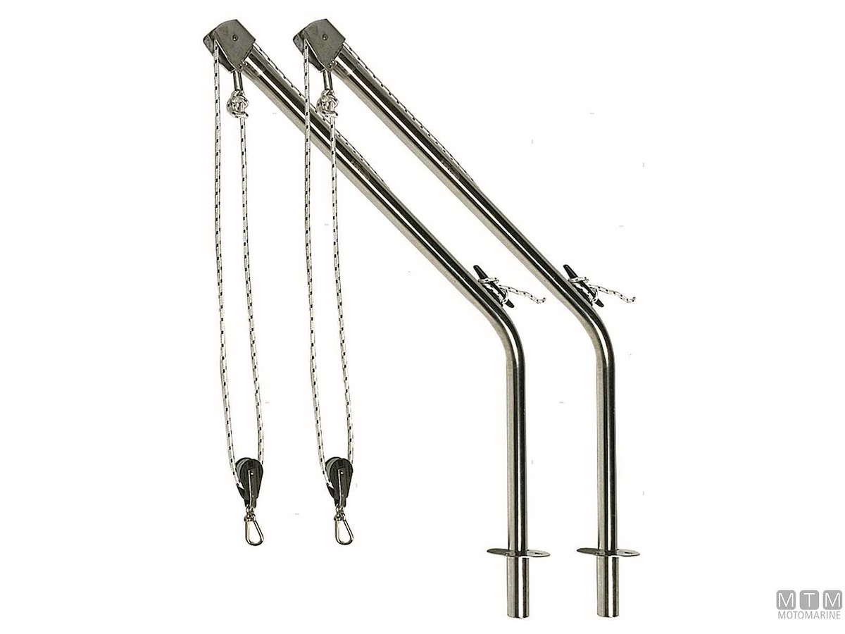 Coppia gruette per montaggio su coperta in tubo di Acciaio Inox lucidato a specchio.Complete di boccole a incasso, carrucole, bittine e moschettoni.