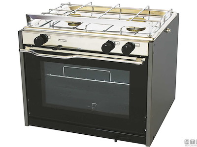 Tropea XL: cucina a 2 fuochi con forno di grandi dimensioni e bruciatore forno centrale ultraperformante. Potenza singolo bruciatore 2000W, forno 1700W.