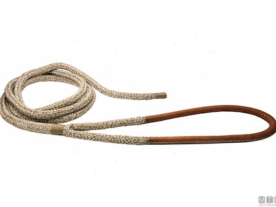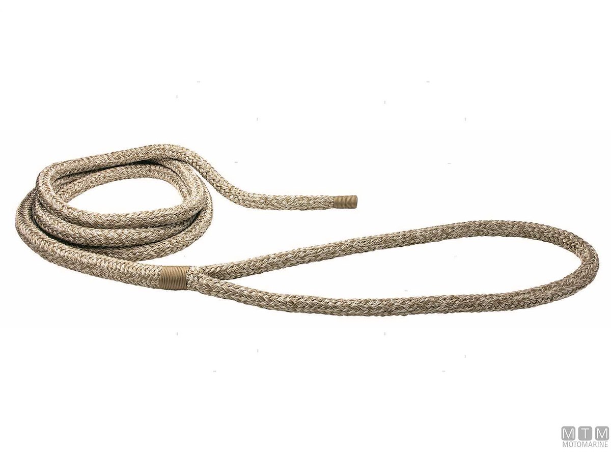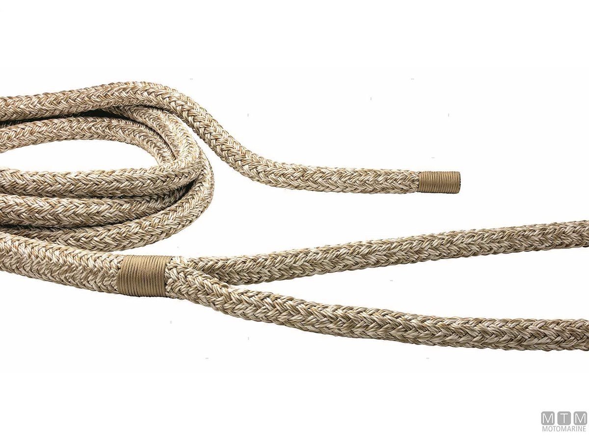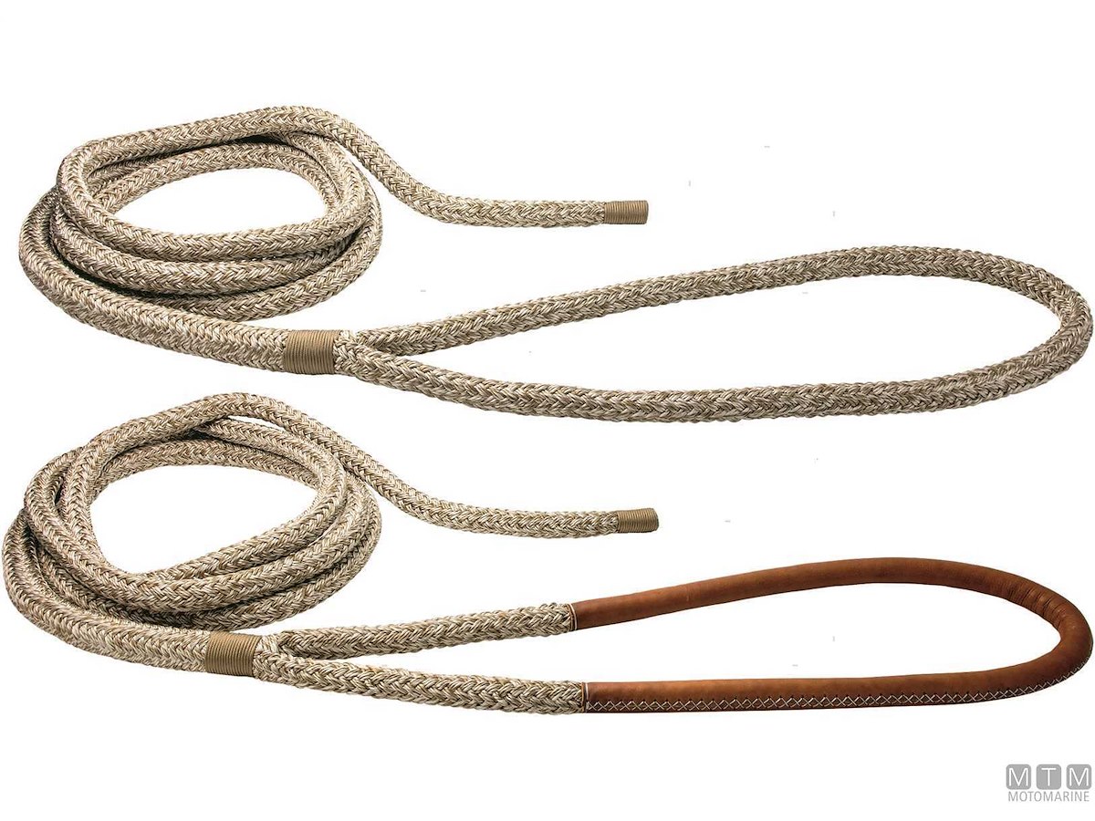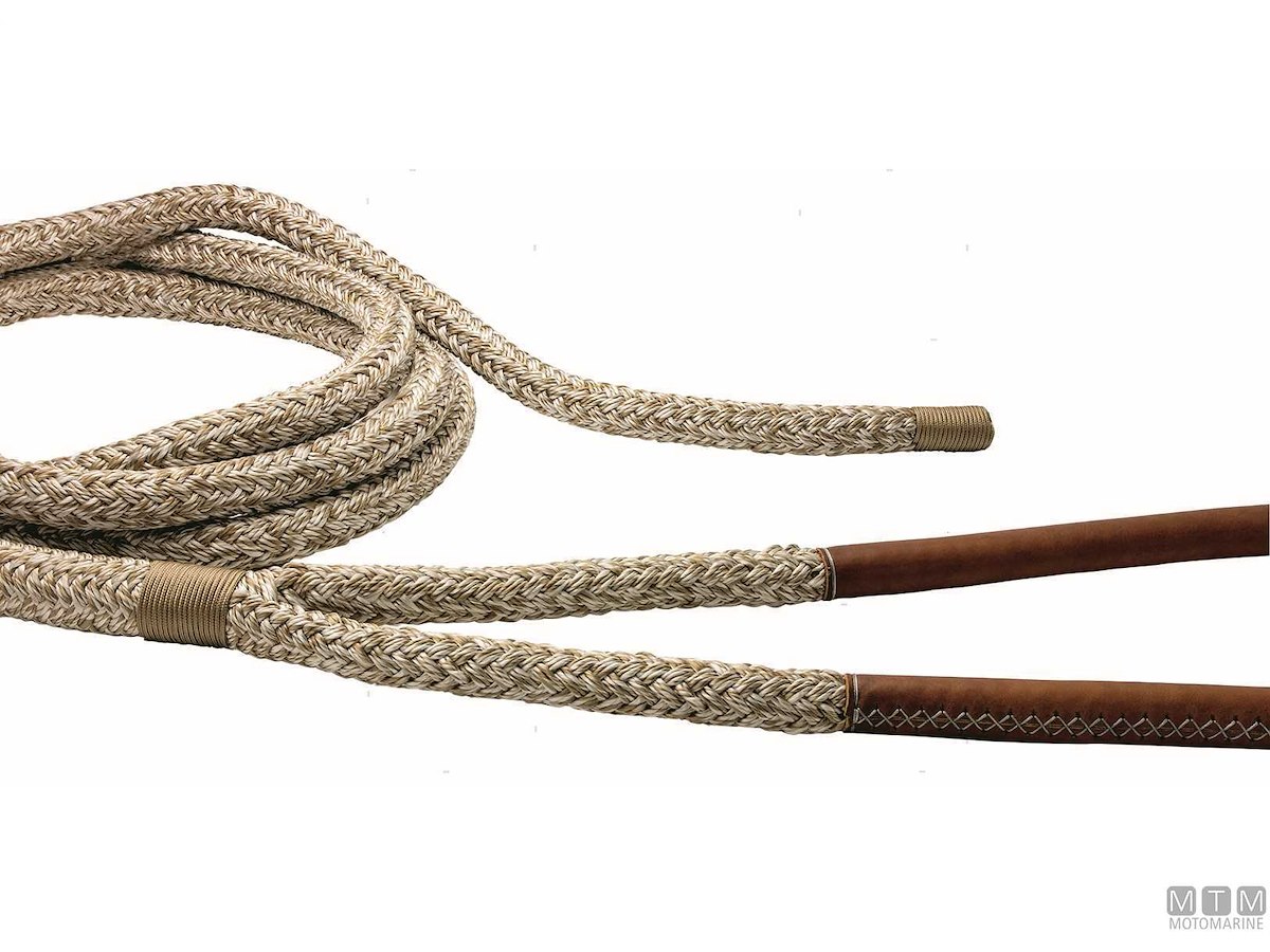 Treccia da ormeggio pronta con gassa impiombata e rifinita a mano. La gassa viene fornita semplice o con rivestimento in morbido cuoio trattato per l'ambiente marino con cuciture in Dyneema. La coda terminale viene anch'essa cucita e rifinita a mano per evitare imperfezioni. Robustissima e morbida, lavorazione a 16 fusi in Poliestere alta tenacità. La guaina è costruita e trattata per la massima resistenza all'abrasione.