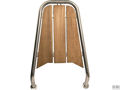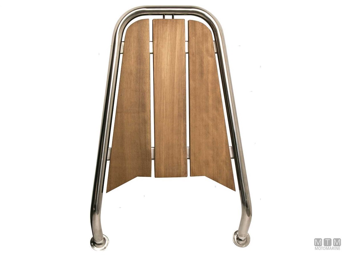 Delfiniera con tubi e attacchi in Acciaio Inox AISI 316. Piano in Teak.
