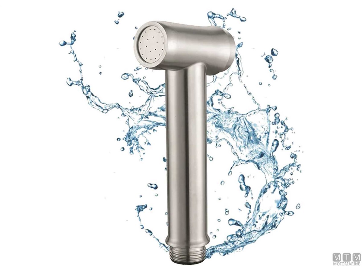 Testa doccetta Push Button in Acciaio Inox, elegante e robusta. Bottone comando apri/chiudi. Attacco da 1/2".