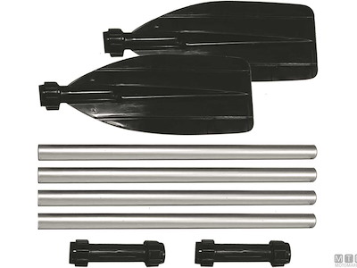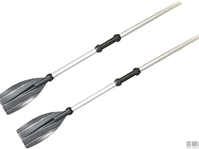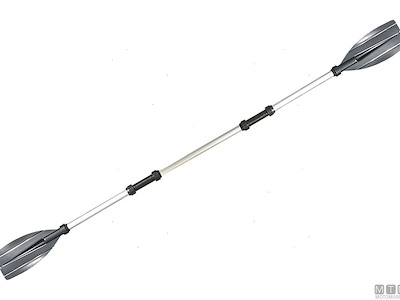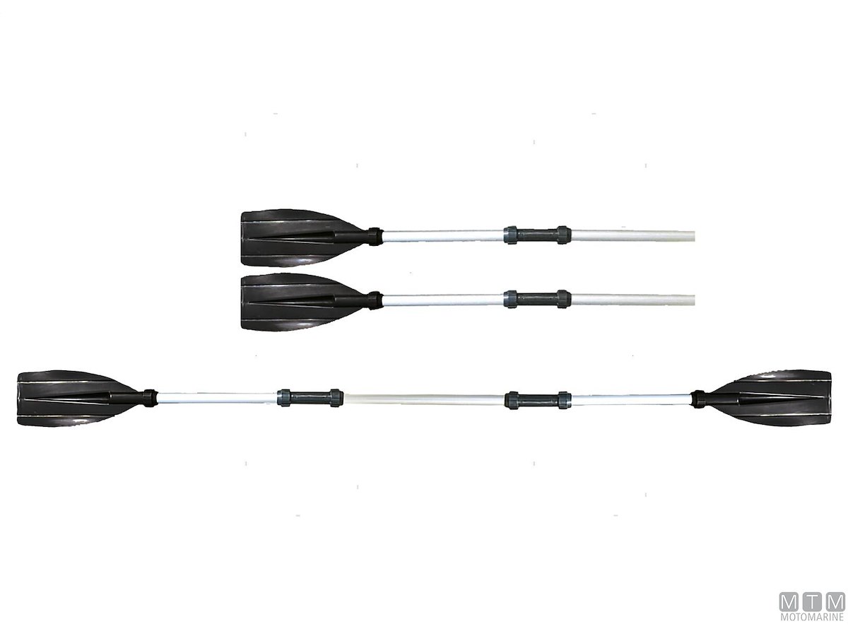 Doppia pagaia divisibile in Alluminio Anodizzato con pale in Plastica. Può formare una o due pagaie, oppure una pagaia con due pale per kayak.
