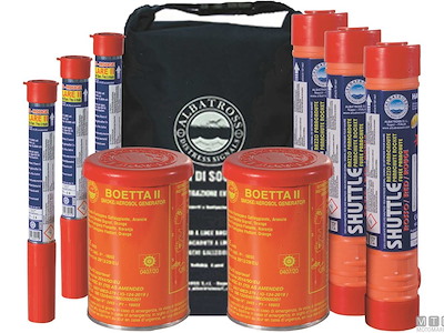 Dotazione segnali per la navigazione senza limiti oltre 50 miglia dalla costa conforme Solas e DL133 in vigore dal 21/10/2024. Composto da: 2 boette fumogene galleggianti 3 fuochi a mano 3 razzi a paracadute
