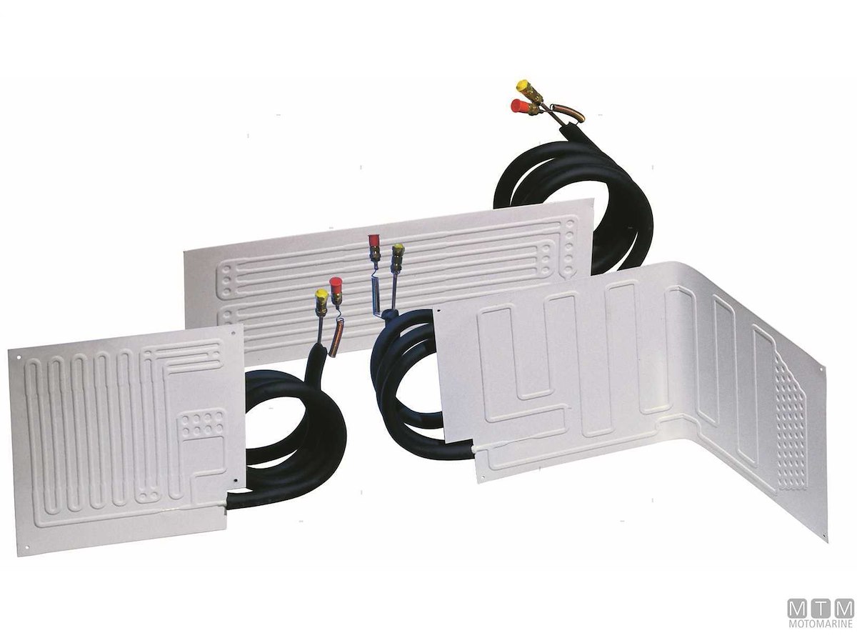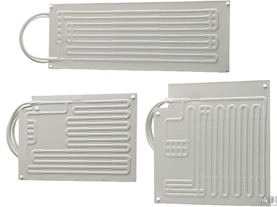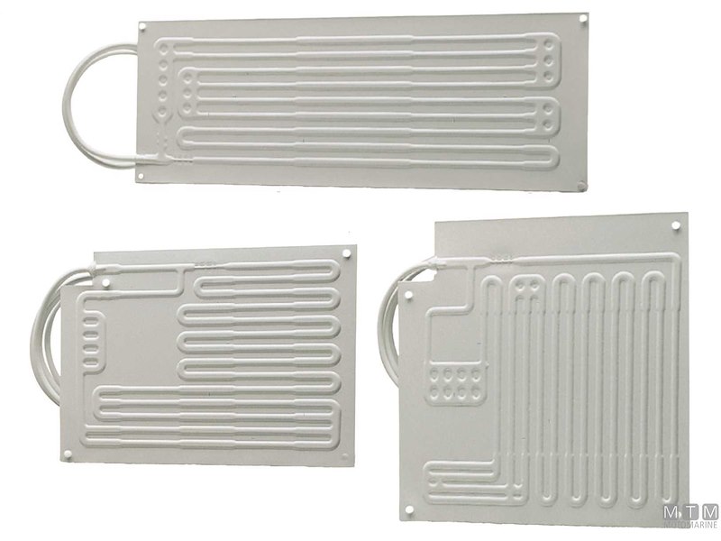Evaporatori piatti con giunti rapidi da 2 metri tipo Vitri per frigoriferi. Possono essere piegati ed adattati alla forma del vano da refrigerare.