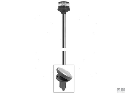 Fanali 360° LED 9-32V su asta estraibile in Acciaio Inox AISI316 con base a incasso con coperchio. Protezione IPX7, certificati R.I.Na. per imbarcazioni fino a 20 metri.