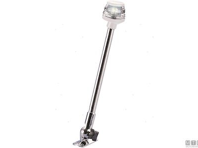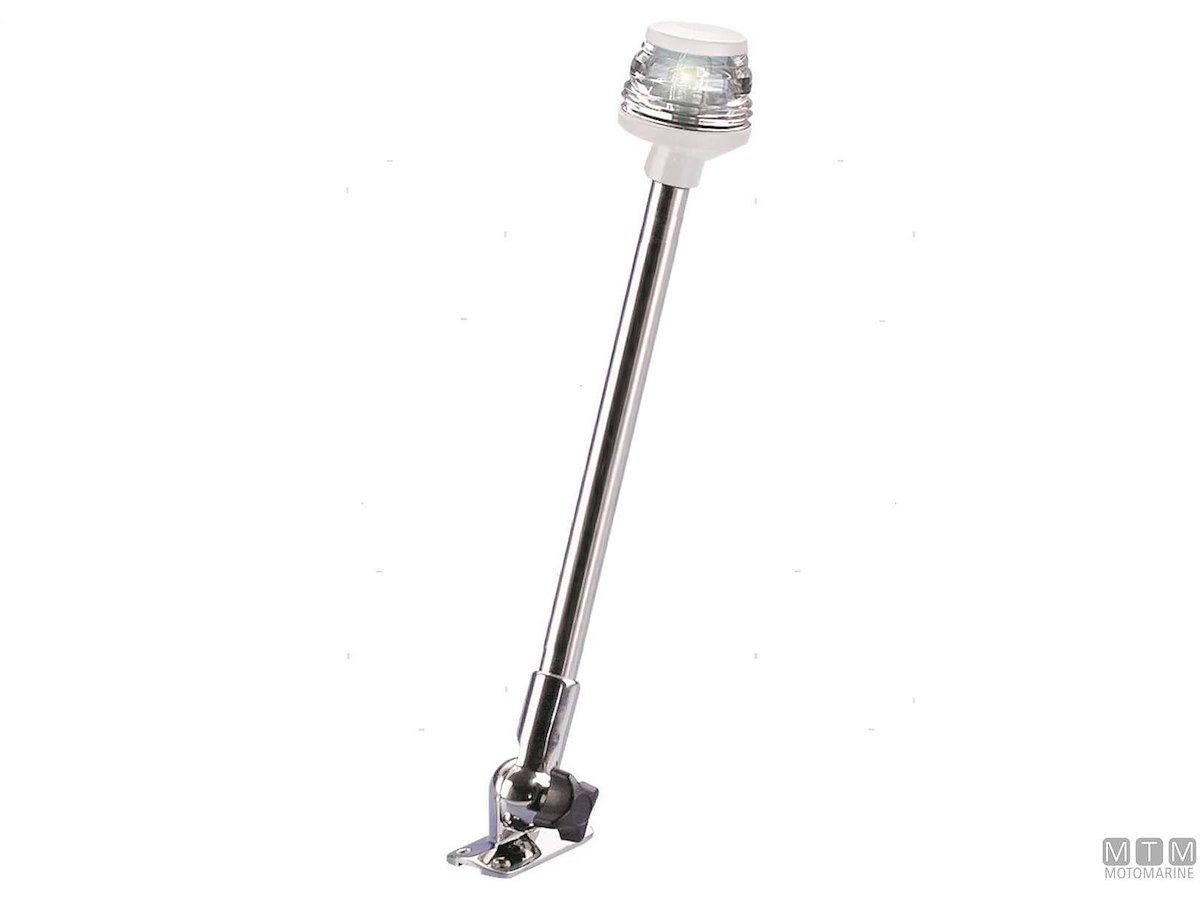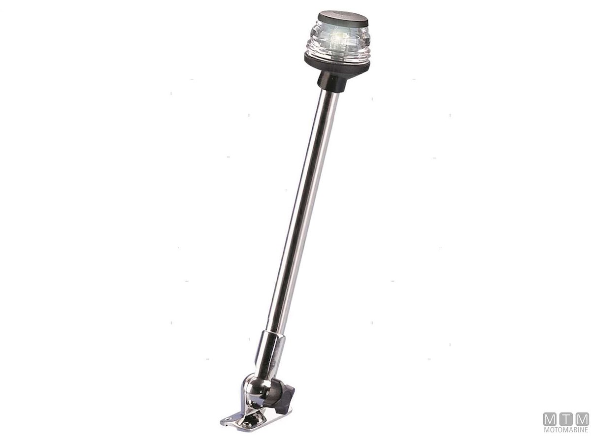 Fanali 360° LED 12/24V su asta pieghevole in Acciaio Inox con base piana. Protezione IP56. ↵Per imbarcazioni fino a 20 metri.