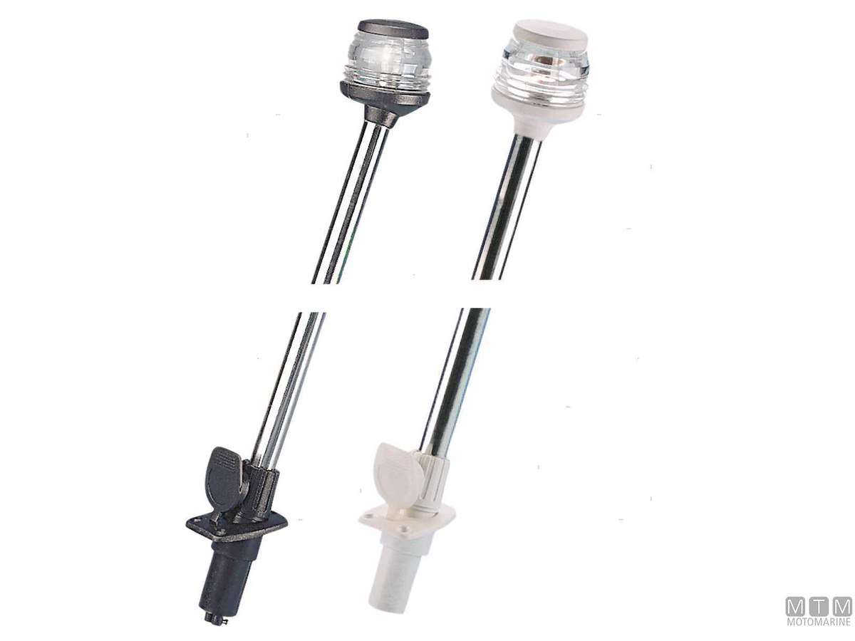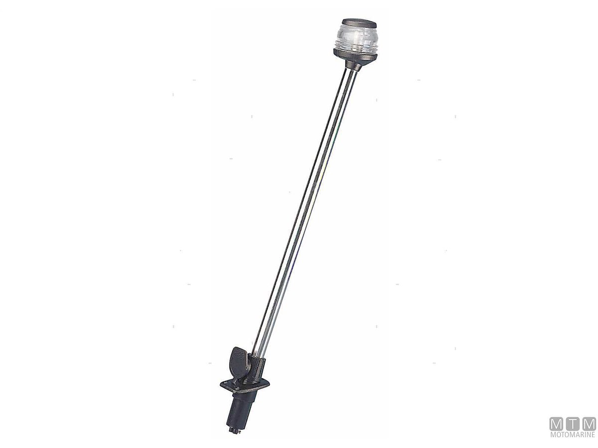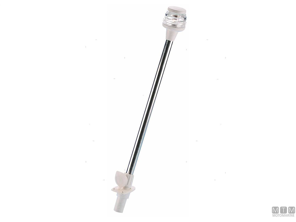 Fanali 360° su asta in Acciaio Inox con base a incasso.↵Per imbarcazioni fino a 12 metri.