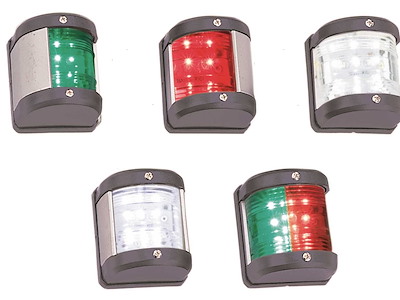 Fanali di navigazione LED 12V medi in plastica con guance in Acciaio Inox certificati CE adatti per imbarcazioni fino a 12 metri.Potenza 0.54W, dimensioni 65 x H75 mm