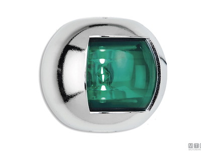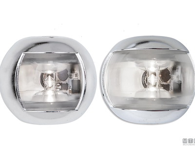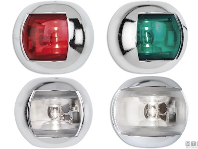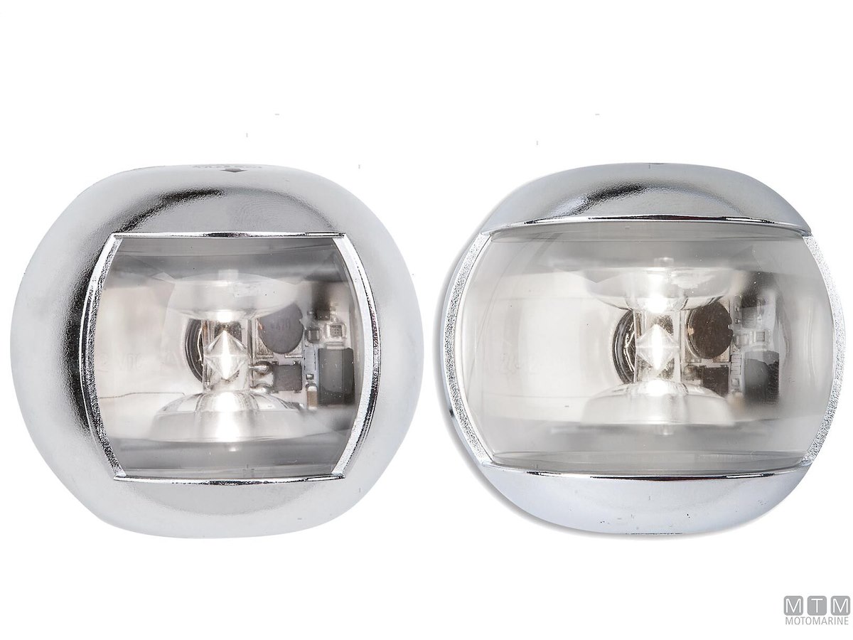Fanali di navigazione LED 9-32V compatti piatti per montaggio a parete con cassa IPX7 in Acciaio Inox AISI316 e lenti in Policarbonato. Certificati R.I.Na.Dimensioni 70 x H63 mm.