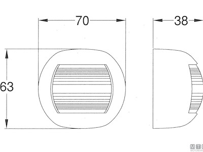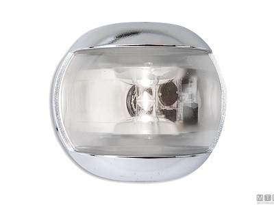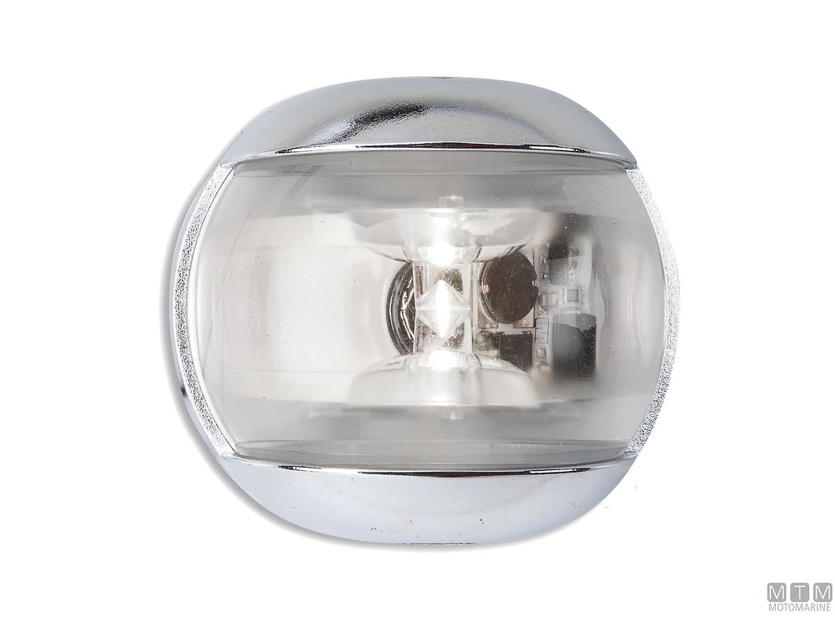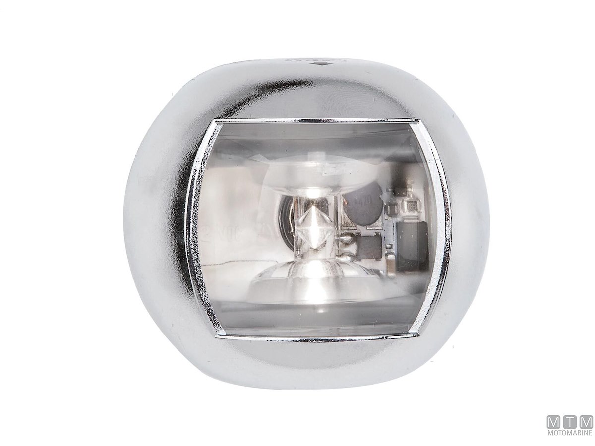 Fanali di navigazione LED 9-32V compatti piatti per montaggio a parete con cassa IPX7 in Acciaio Inox AISI316 e lenti in Policarbonato. Certificati R.I.Na.Dimensioni 70 x H63 mm. Cod.: 2112422 Luce: 135° BIANCA Visibilità NM: 2 IMO-COLREG: <50 m