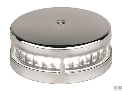 Fanali LED di navigazione 10-30V in Acciaio Inox per montaggio su coperta per imbarcazioni fino a 12 metri.Certificati CE.Dimensioni: D76 x H34 mm.