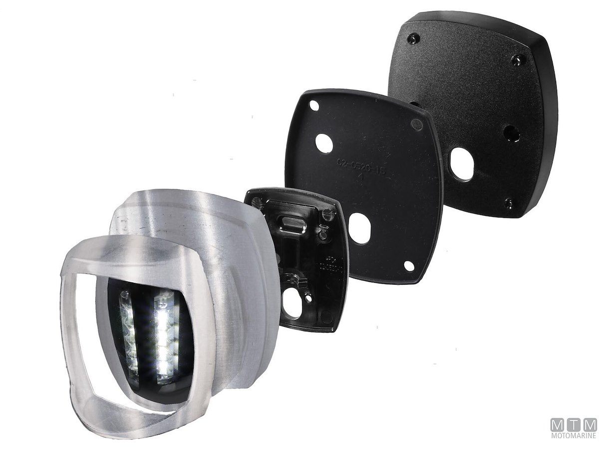 Fanali di navigazione LED 12/24V con cassa in Acciaio Inox.↵A normativa CE/COLREG 72/ABYC/USCG.↵Dimensioni: 82 x 63 x H95 mm.
