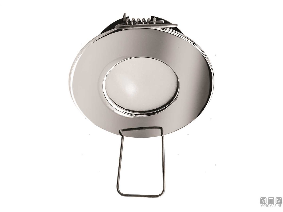 Faretto LED impermeabile IP65 per interni ed esterni con cornice in Acciaio Inox lucidato a specchio e lente in Policarbonato HG. Montaggio ad incasso con molle, voltaggio universale 12-24V con dimmer digitale integrato nel circuito, protezione da surriscaldamento, picchi e inversione di polarità. Luce intensa con un consumo di soli 1,5W(12V).