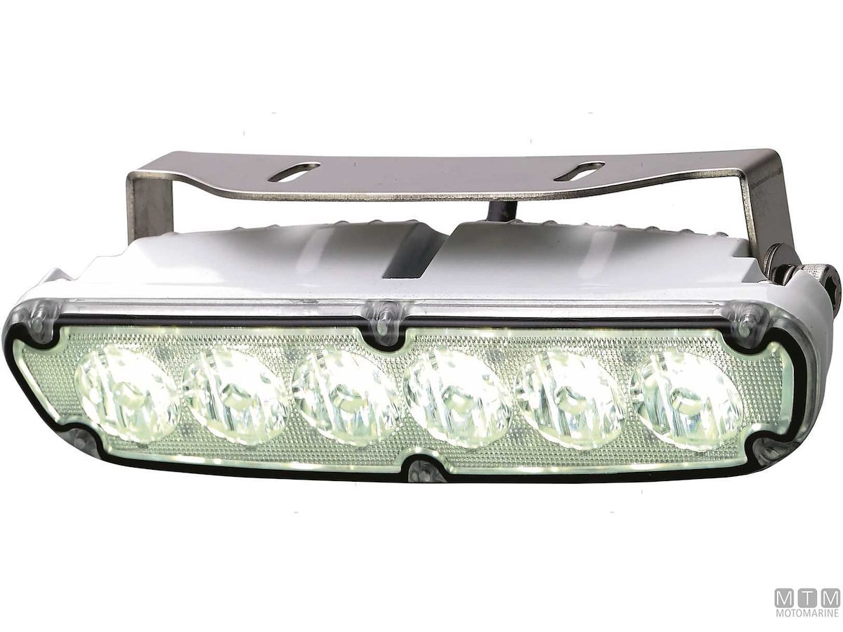 Faretto LED 10-30V da coperta e da pozzetto con cassa in lega di Alluminio resistente alla corrosione IP65 e staffa in Acciaio Inox. Luce bianca 5500°K, consumo 8.4W