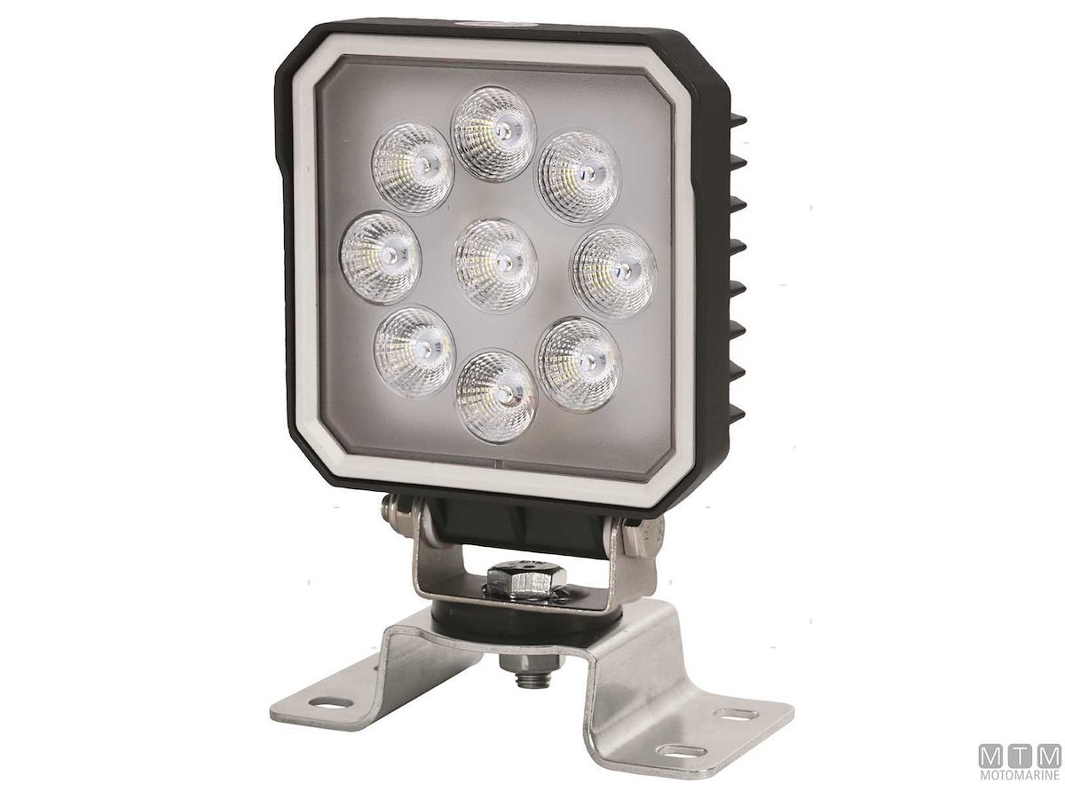 Faretto da coperta e da pozzetto impermeabile IP67. Bulbo con 9 LED Osram a luce diffusa da 3W. Cassa in lega di Alluminio resistente alla corrosione con staffa in Acciaio Inox.Voltaggio 9-32V. Potenza 27W. Lumen 2430.Completo di base in Acciaio Inox, guarnizione a frizione antivibrante e viteria Inox.