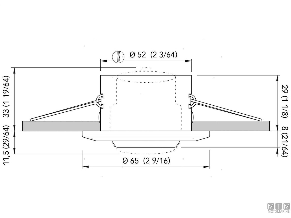 Faretto LED 1,5W IP40 per interni orientabile con cornice in Acciaio Inox AISI316. Montaggio ad incasso con molle. Voltaggio universale 9-32V con LED dimmerabile protetto da picchi di voltaggio.
