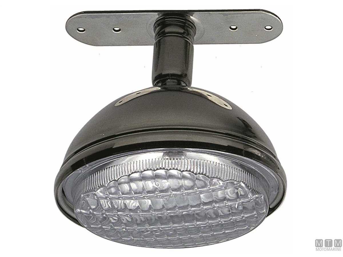 Faro da crocetta in Acciaio Inox con attacco snodato. Bulbo ø 110 mm 12V/55W. Cod.: 2121202 V: 12