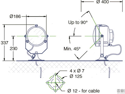 Faro professionale LED 10-32V orientabile dal ponte con cassa in Acciaio Inox AISI316 lucidato a specchio. Tutti i componenti sono antivibranti, amagnetici e resistenti alla corrosione. Fascio di luce concentrata spot con portata fino a 600 metri.
