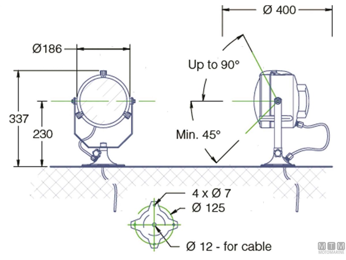 Faro professionale LED 10-32V orientabile dal ponte con cassa in Acciaio Inox AISI316 lucidato a specchio. Tutti i componenti sono antivibranti, amagnetici e resistenti alla corrosione. Fascio di luce concentrata spot con portata fino a 600 metri.
