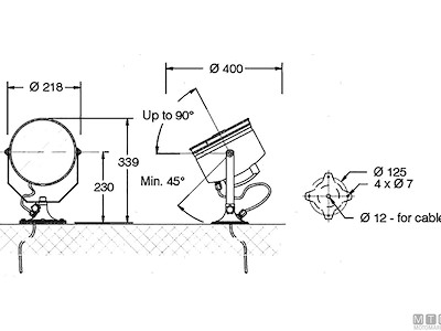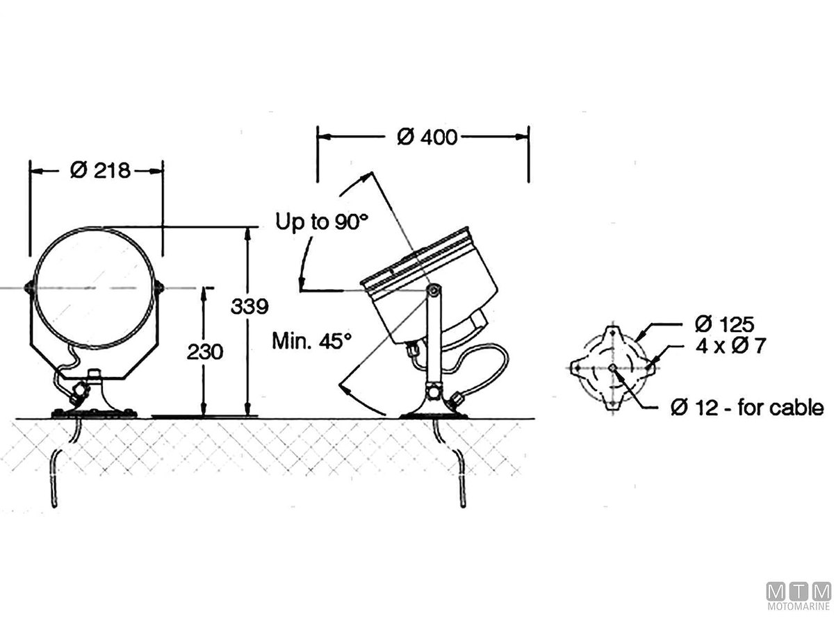 Faro professionale orientabile dal ponte con cassa in Alluminio Anodizzato verniciato RAL9016 resistente raggi UV. Tutti i materiali sono amagnetici e resistenti alla corrosione.