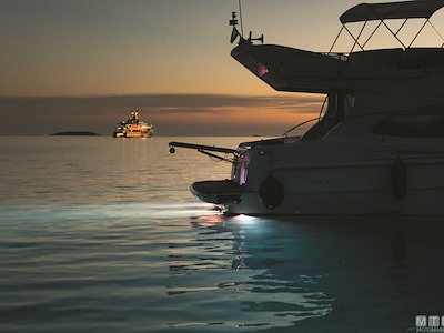Faro subacqueo LED ultrapiatto con corpo in Bronzo/Alluminio AB2. ↵Potente luce bianca 8000°K con cono ampio 60° e parabola sottovuoto con lenti infrangibili in Policarbonato. Elettronica sigillata con driver integrato e circuito protetto da picchi di voltaggio, da inversione di polarità e da surriscaldamento. Nella versione RGBW (Rosso-Verde-Blu-Bianco) il colore si seleziona tramite un interruttore (non compreso). Dimmer opzionale 122 x 106 x H55 mm. ↵Installazione semplice sotto la linea di galleggiamento con foro alimentazione 10 mm e 4 viti M6x80 mm. ↵↵Attenzione: i fari devono sempre essere immersi nell'acqua per evitare guasti da surriscaldamento prolungato. E' consigliata una adeguata protezione catodica, soprattutto se installati su scafi in metallo.