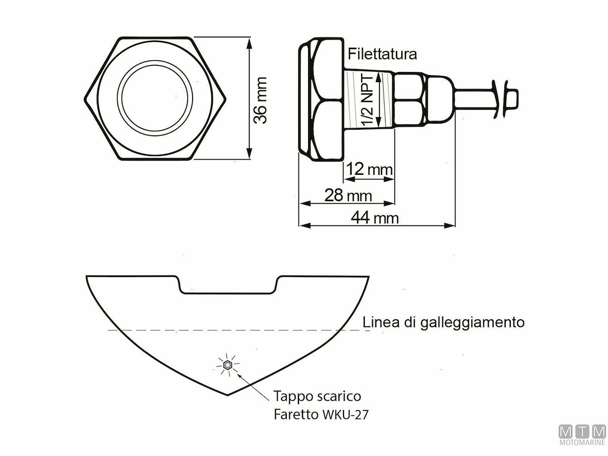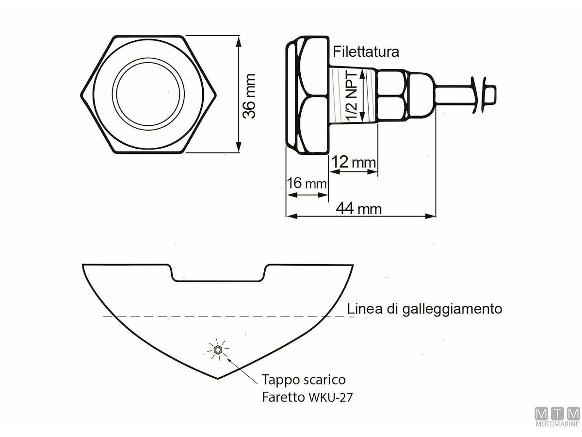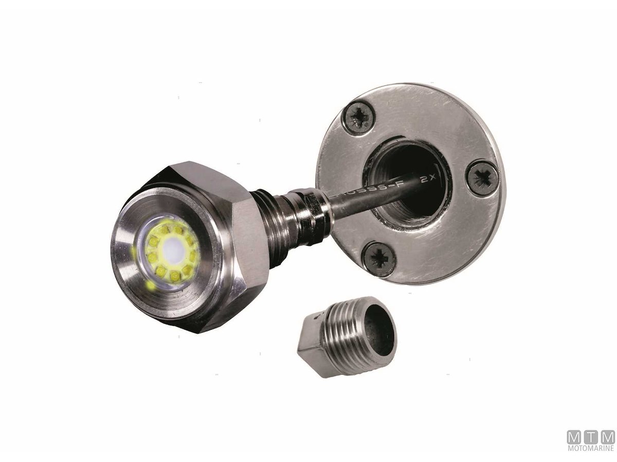 Faro subacqueo Power LED di grande luminosità. Grazie alla filettatura 1/2"NPT si monta facilmente su ombrinali e tappi di scarico a poppa sotto la linea di galleggiamento. Corpo in Acciaio Inox 316 stagno IP68 con elettronica immersa in gel siliconico protettivo. Voltaggio universale 9-32V con scheda driver integrata e circuito di protezione termica. Lunghezza cavo 160 cm.