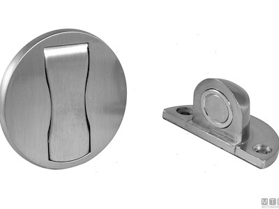 Ferma porte e portelli magnetico in Acciaio Inox satinato. Composto da due parti che si montano separatamente sulla parte fissa e sulla parte mobile. Fissaggio con base adesiva 3M oppure con viti incluse.