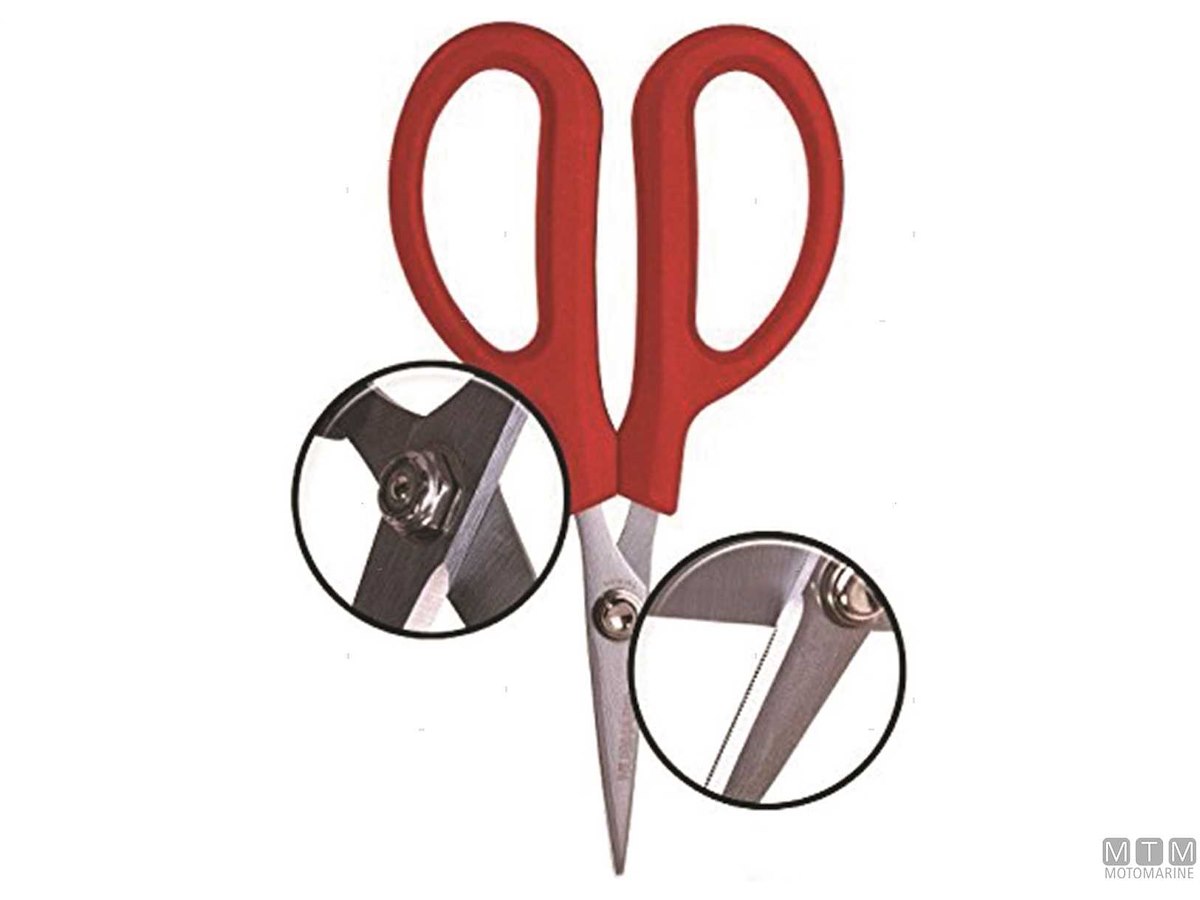 Forbici tagliacime con speciale lama seghettata in lega di Acciaio e Carbonio particolarmente adatta per il taglio delle cime in Dyneema, per il Kevlar e per tutti i materiali tessili più duri.
