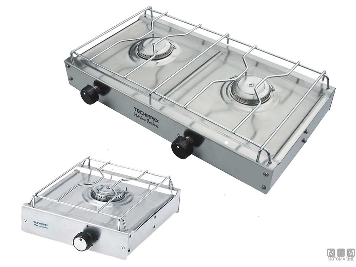 Fornelli Techimpex ad appoggio leggeri e compatti in Acciaio Inox. Completi di termocoppia e griglia con blocco a pressione. Fornello a 1 fuoco Capri potenza bruciatore: 1600W. Fornello a 2 fuochi Ponza potenza bruciatori: 2000W.