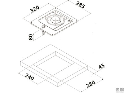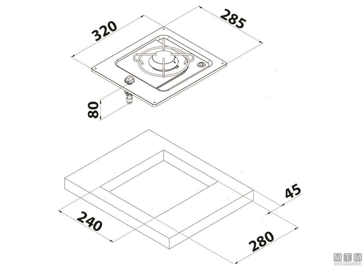Fornello a incasso a 1 fuoco con piano in Acciaio Inox lucido e termosicurezze.