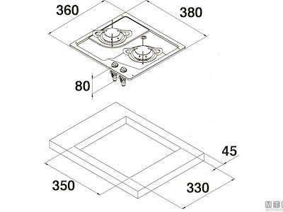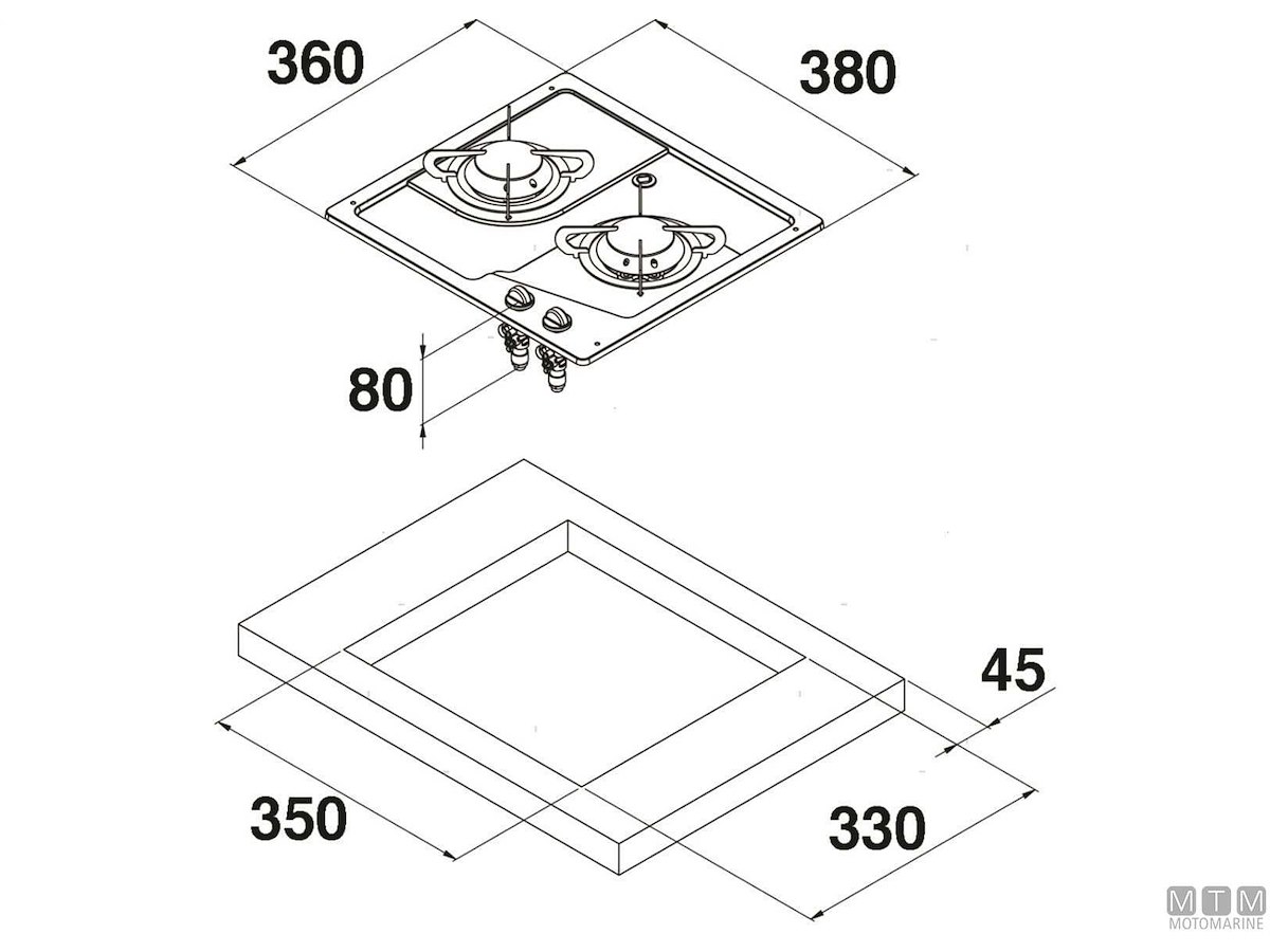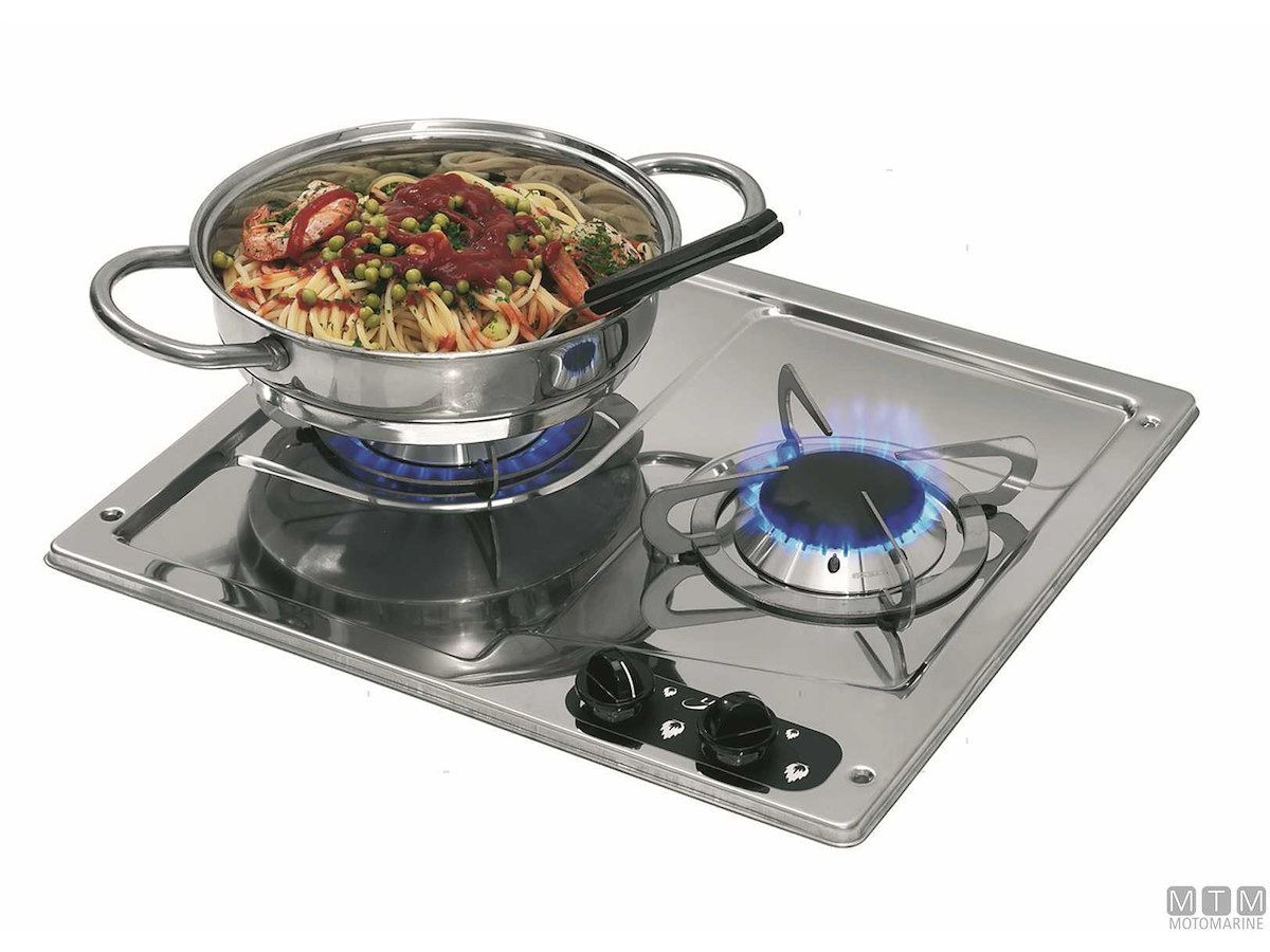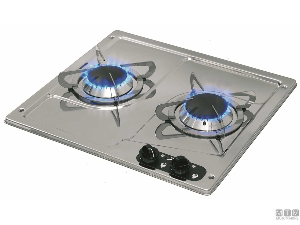 Fornello a incasso a 2 fuochi con piano in Acciaio Inox lucido e termosicurezze.
