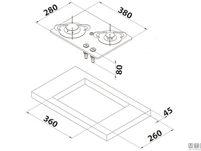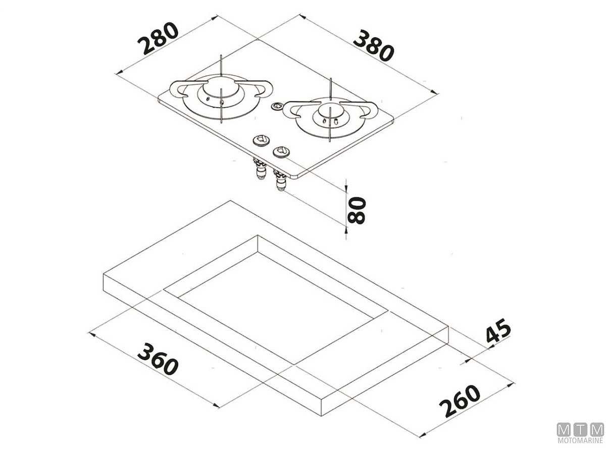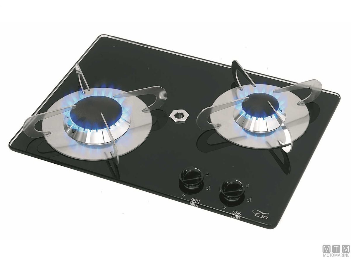 Fornello a incasso a 2 fuochi con piano in Vetro Temperato e termosicurezze.