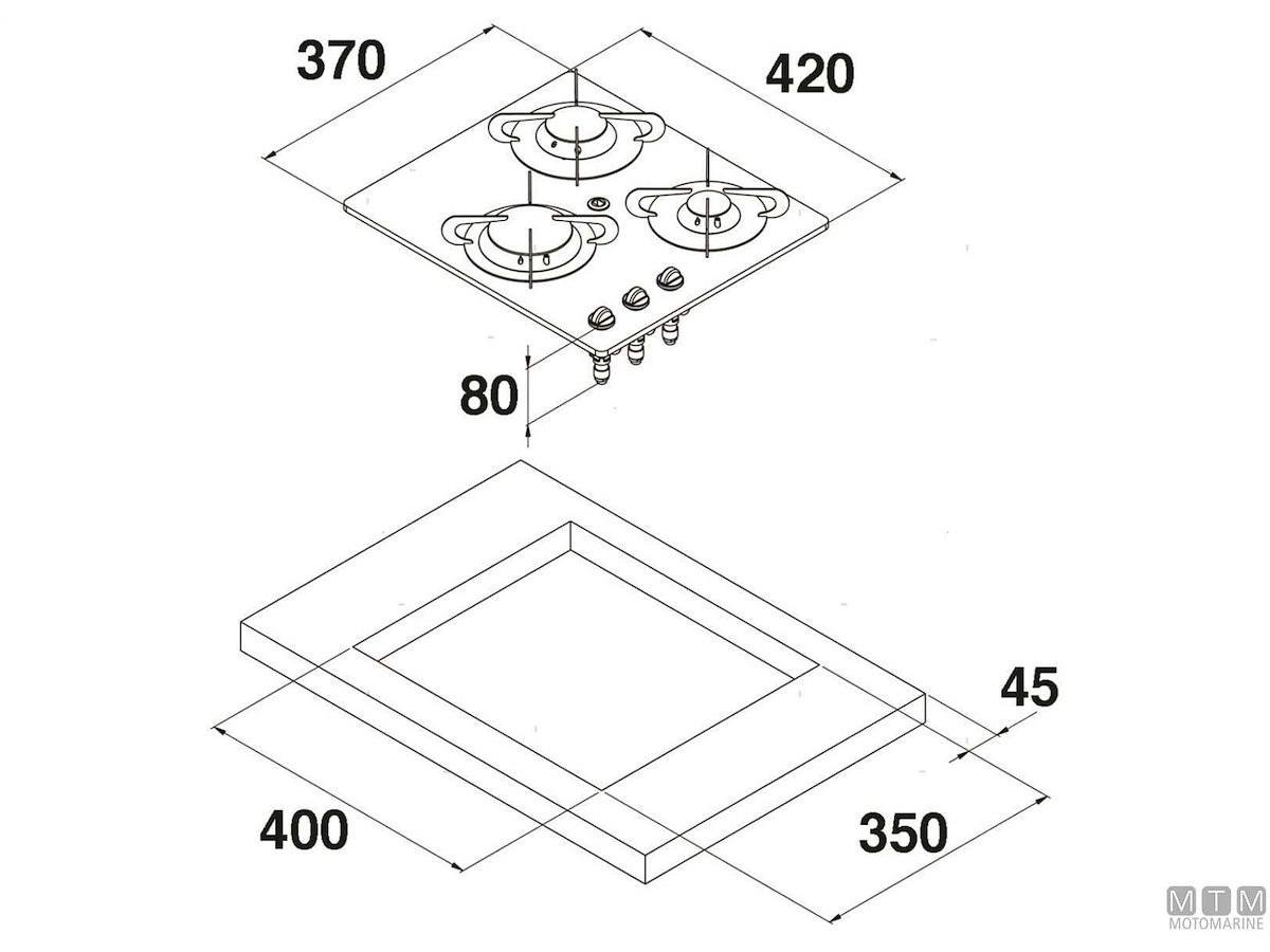 • mm: 420 x 370