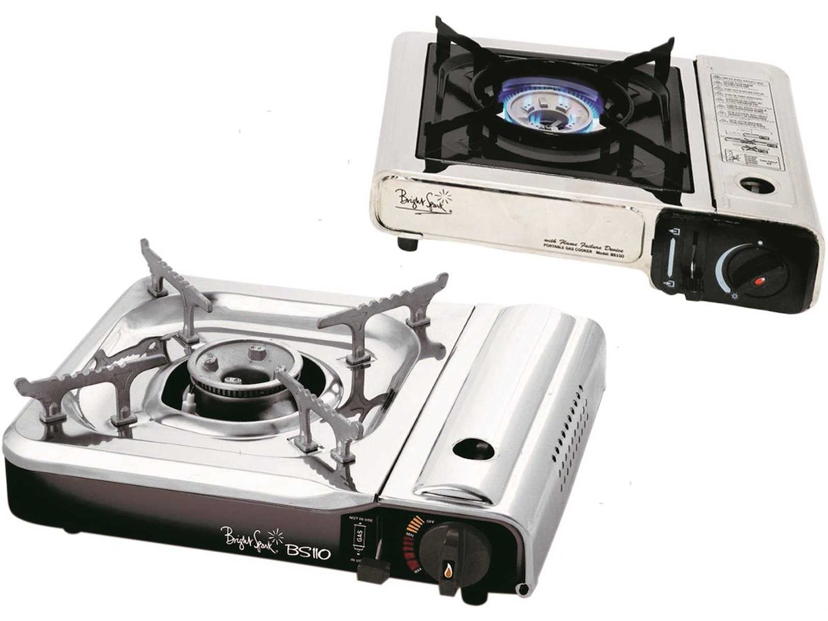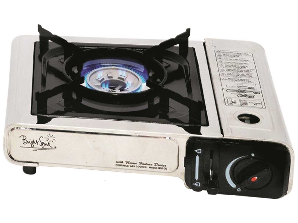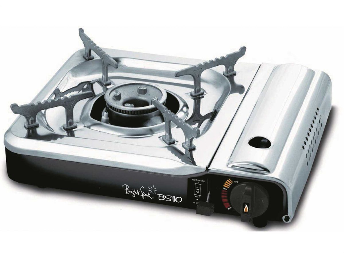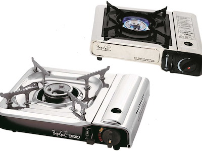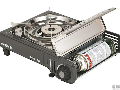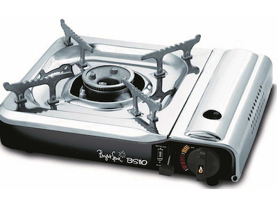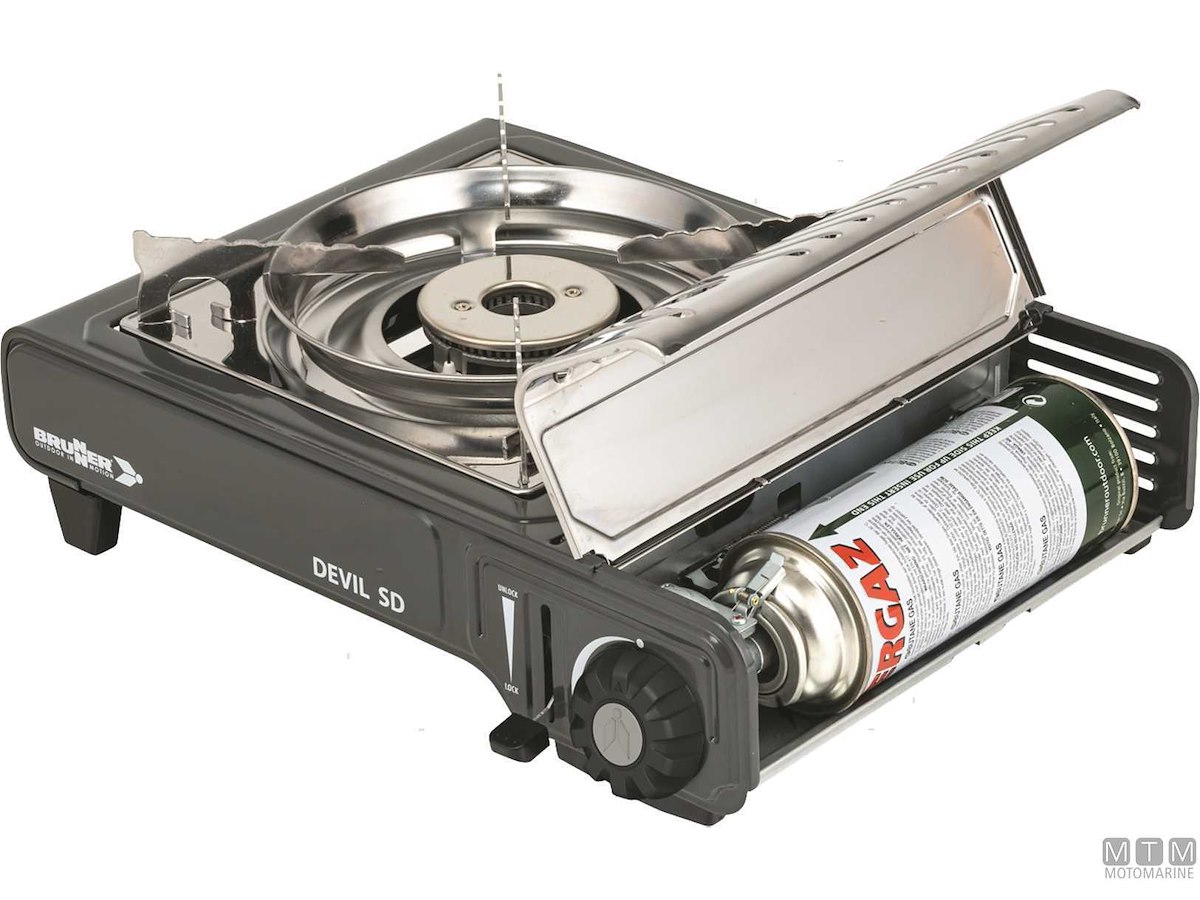 Fornello portatile Brunner a gas alimentato con bomboletta intercambiabile tipo Camping Gaz. Vano gas in Acciaio Inox e bruciatore in Alluminio con doppia fiamma regolabile. Completo di accensione piezoelettrica, termosicurezza e pratica valigetta per il trasporto.