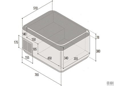 Frigo/Freezer portatile con unità refrigerante Danfoss bitensione 12/24V. Temperatura interna regolabile tra +10° e -20°C tramite termostato con LED oppure con display digitale. Consumo 45W.