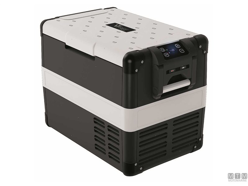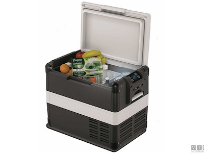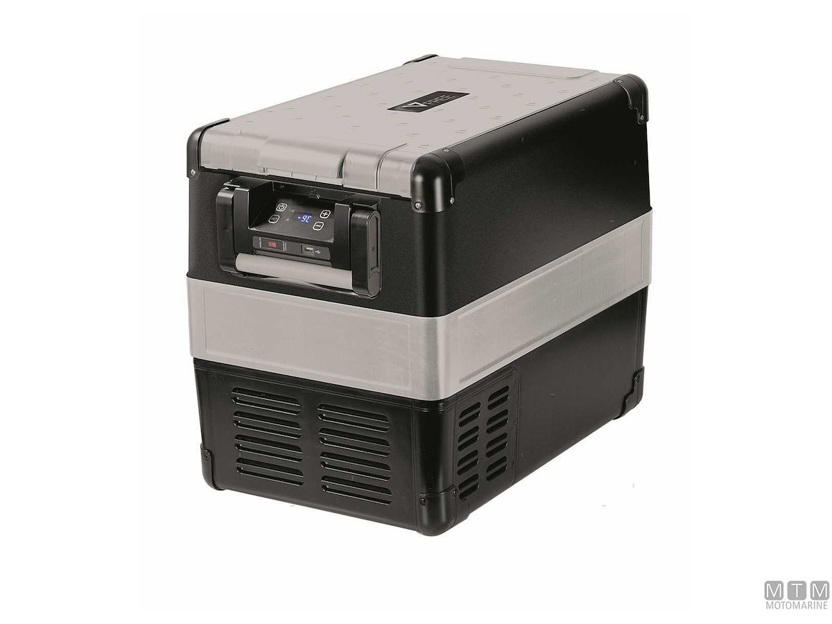 Frigo/Freezer portatile con unità refrigerante Danfoss multitensione 12/24/230V. Con pannello digitale, display LED, presa caricabatterie USB, coperchio amovibile, cestello estraibile e luce interna a LED. Temperatura interna regolabile tra +10° e -20°C.