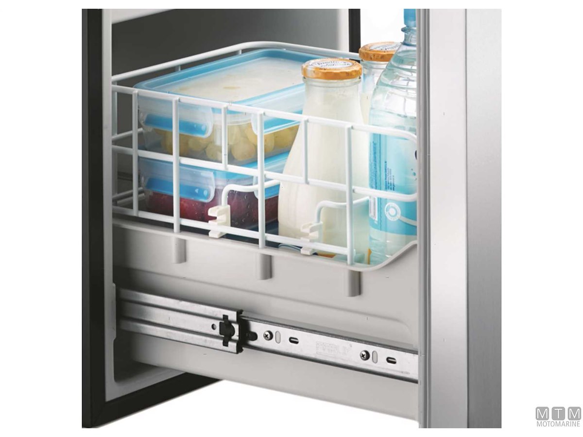 Frigoriferi Dometic CoolMatic CRD 12/24V a cassetto con unità refrigerante esterna (non remotizzabile) a giri variabili con risparmio energetico del 25%. Cella freezer amovibile. Il pannello comando touch permette di configurare solo frigo, solo freezer oppure frigo/freezer. Illuminazione a LED. Porta tipo Silver e cornici di finitura standard o per montaggio a filo disponibili come accessorio.