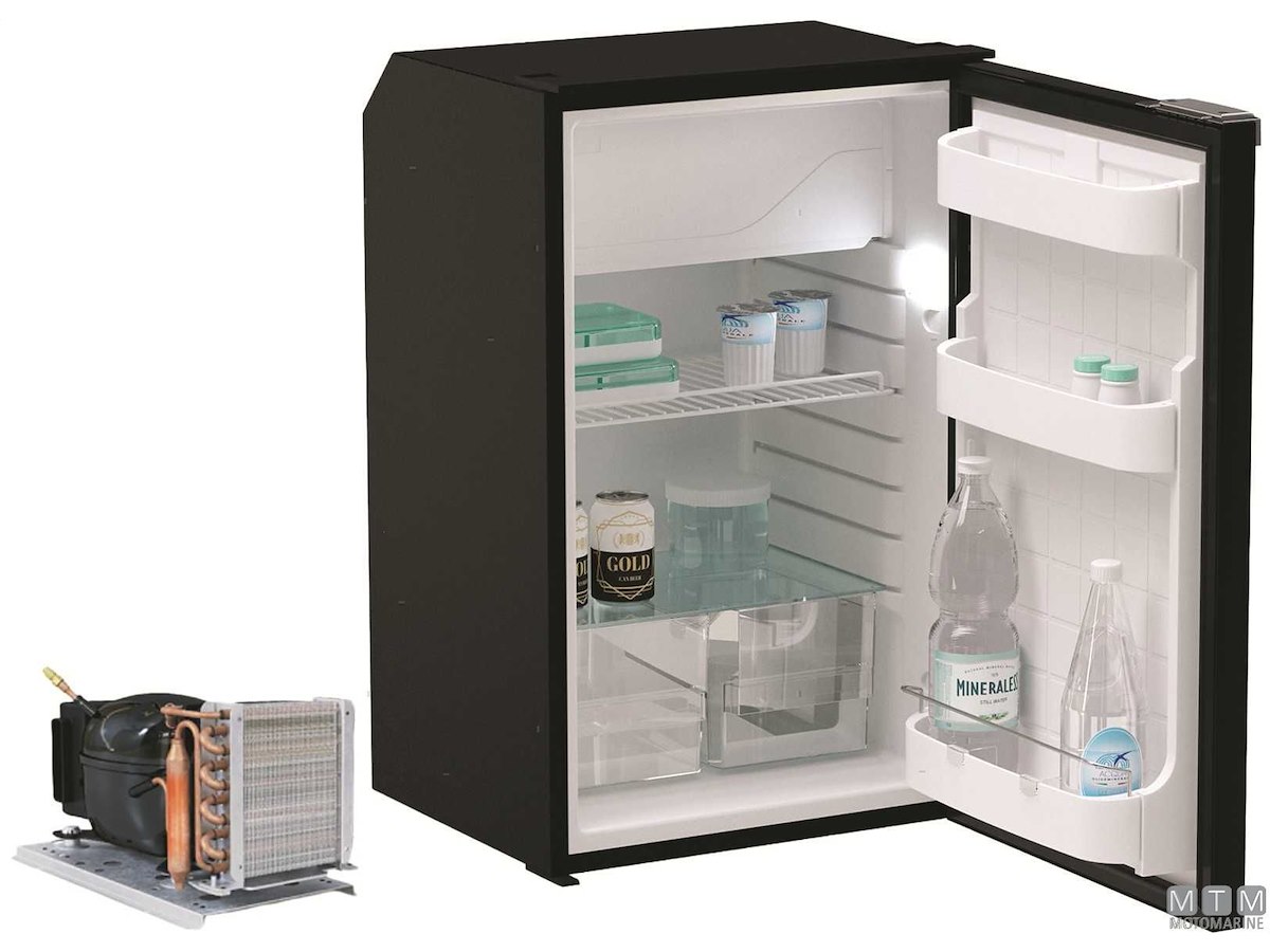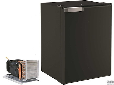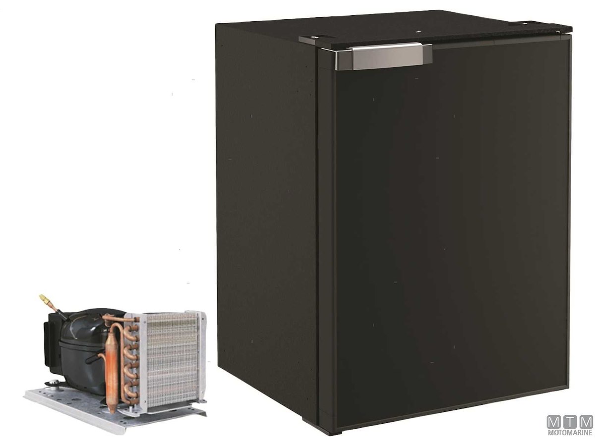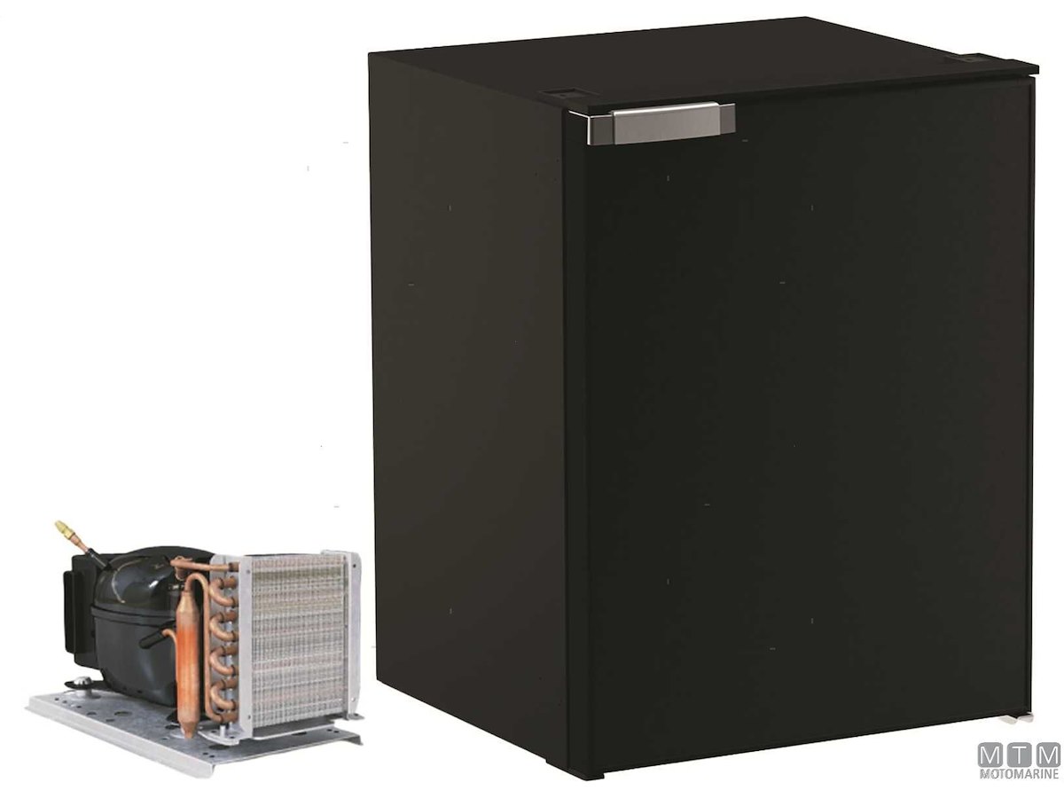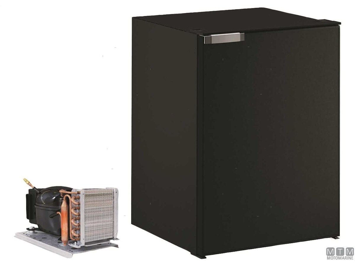 Frigoriferi Vitrifrigo con unità refrigerante Danfoss 12/24V esterna remotizzabile fino a 1,5 metri ed apertura a porta reversibile con posizione di ventilazione per periodi di non utilizzo. Completi di luce LED e di termostato meccanico. Variante con porta grigia o nera.