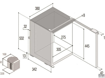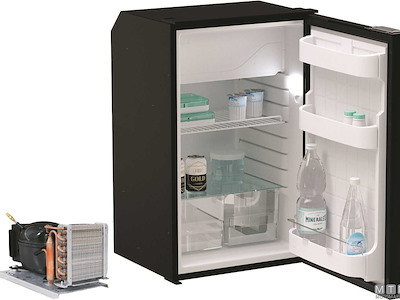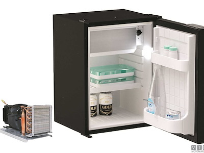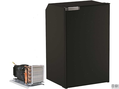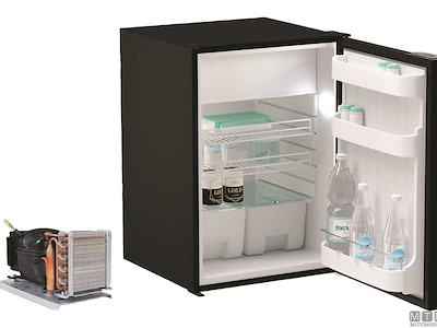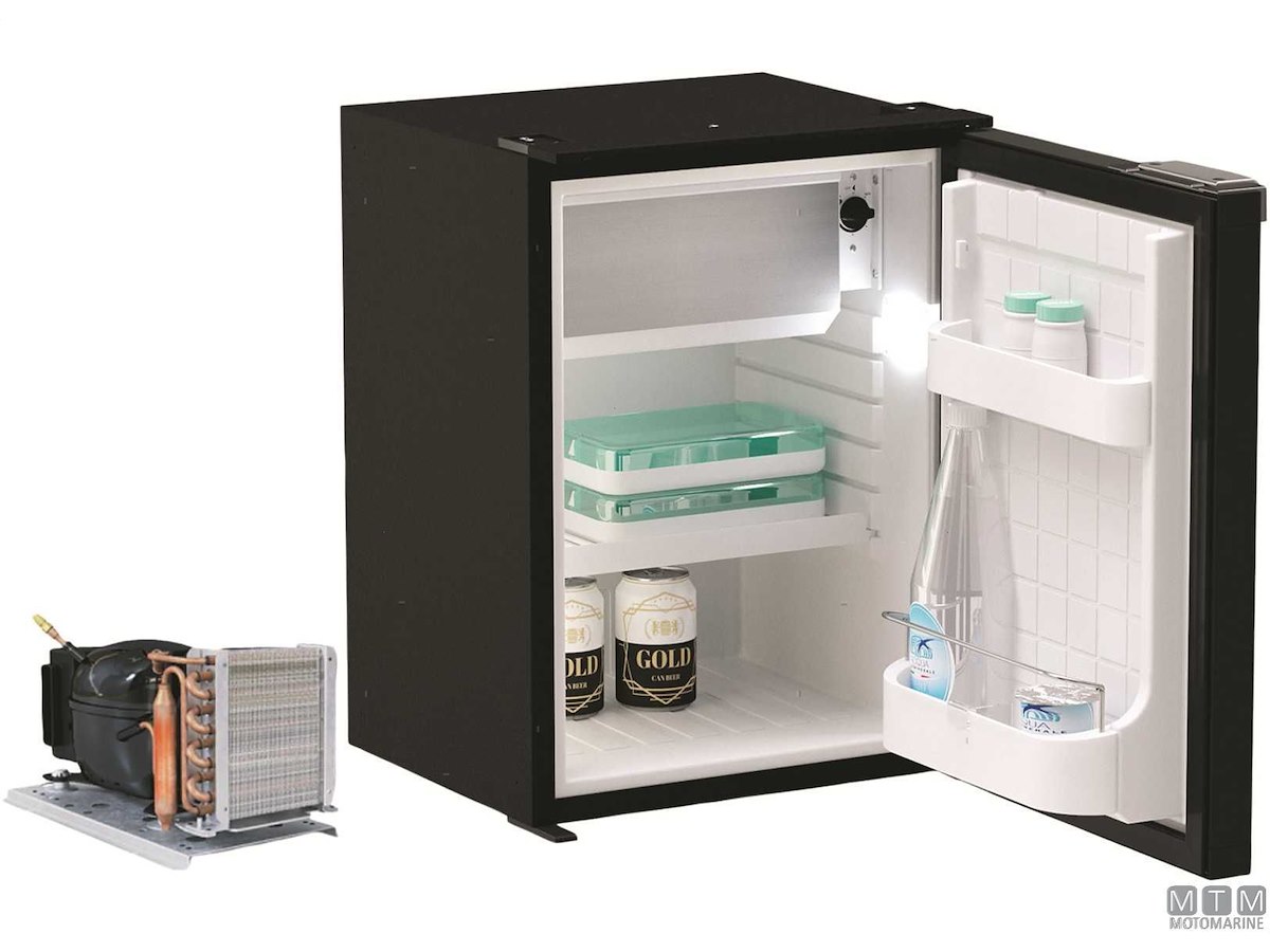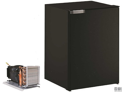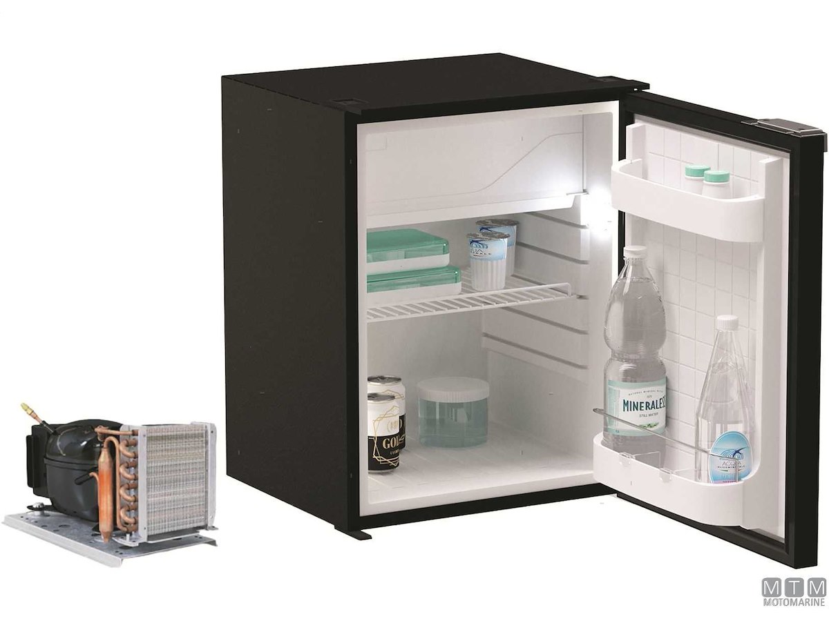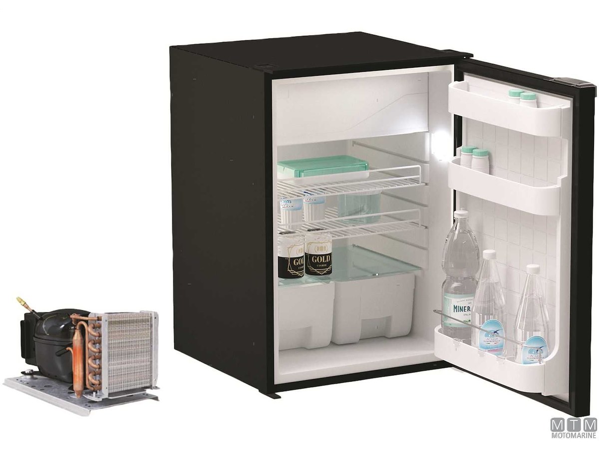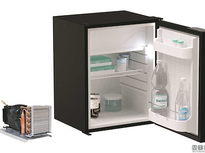 Frigoriferi Vitrifrigo con unità refrigerante Danfoss 12/24V esterna remotizzabile fino a 1,5 metri ed apertura a porta reversibile con posizione di ventilazione per periodi di non utilizzo. Completi di luce LED e di termostato meccanico. Variante con porta grigia o nera.