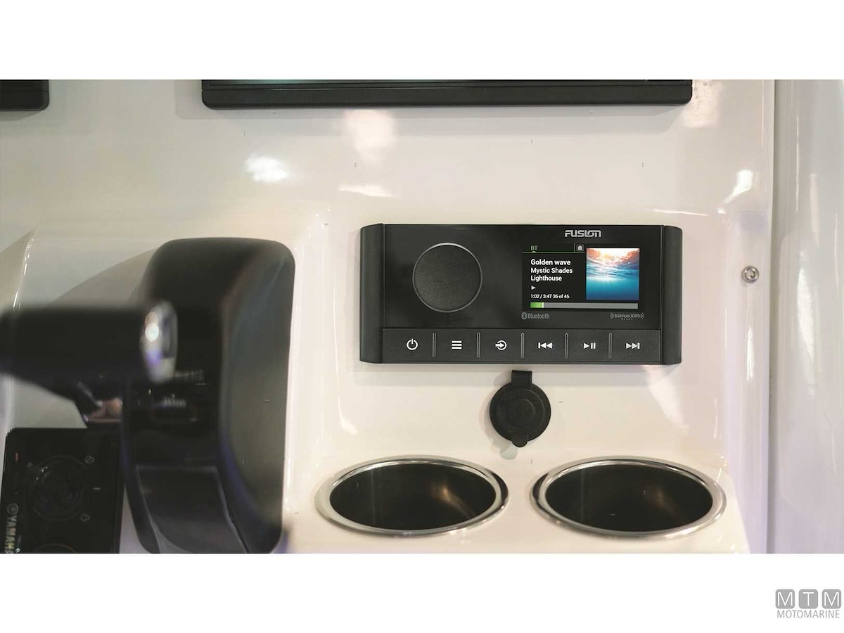 Stereo marino da cruscotto Fusion MS-RA210 con display LCD Glass-Bonded. Radio FM/AM RDS DAB ready, presa USB e ingresso AUX posteriore. Bluetooth integrato per streaming audio da smartphone o dispositivi compatibili. Tramite la funzione Fusion-Link remote control è possibile gestire lo stereo anche da orologi Garmin o display multifunzione compatibili NMEA2000. Dotato di tecnologia DSP (Digital Signal Processing) per ottimizzare il suono in tempo reale. Controllo indipendente Multi-Zone per due zone audio separate. Impermeabile IPx7, installazione a incasso o a filo. Il kit retrofit consente l'adattamento su fori preesistenti delle serie 650/750/755.