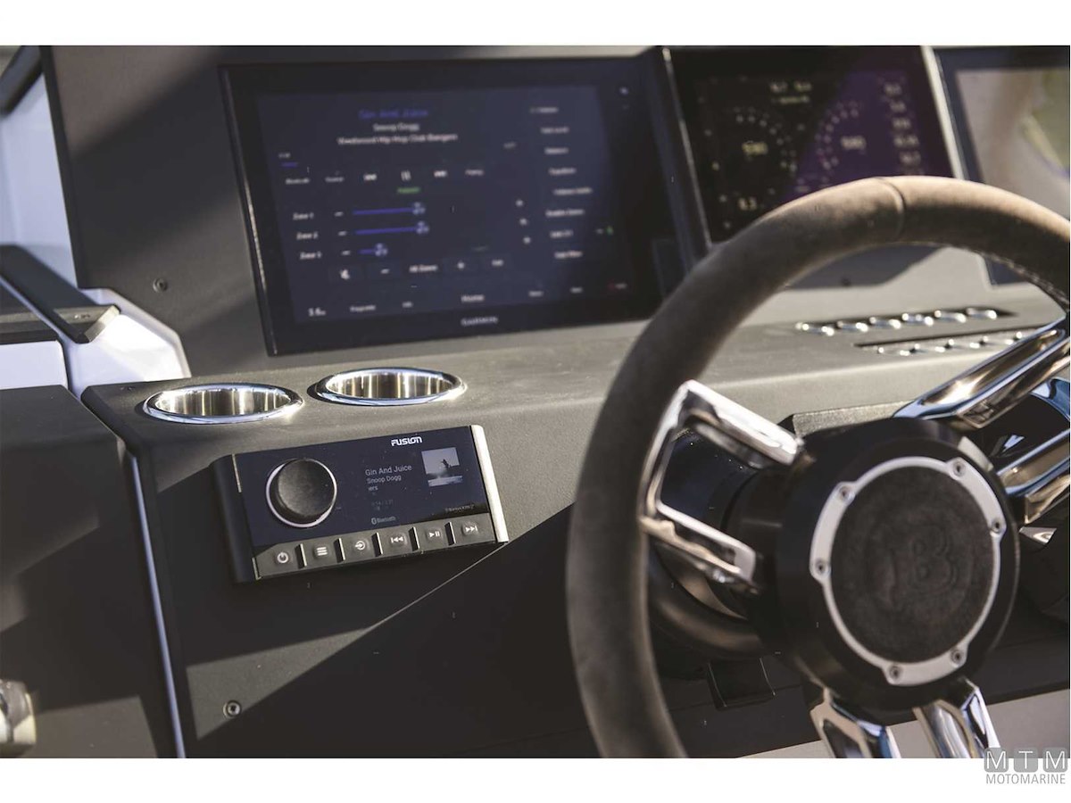 Stereo marino da cruscotto Fusion MS-RA670 con display LCD Glass-Bonded. Radio FM/AM RDS DAB ready, presa USB e ingresso AUX posteriore. Connettività Wi-Fi e Bluetooth integrato per audio streaming da smartphone o compatibili. Tramite la funzione Fusion-Link remote control si può controllare lo stereo anche da orologi Garmin o da dispositivi multifunzione NMEA2000. Dotato di tecnologia DSP (Digital Signal Processing) per ottimizzare il suono in tempo reale. Controllo indipendente delle impostazioni Multi-Zone per tre zone audio separate. Impermeabile IPx7, montaggio a incasso oppure a filo. Il kit retrofit adatta lo stereo su fori preesistenti delle serie 650/750/755.