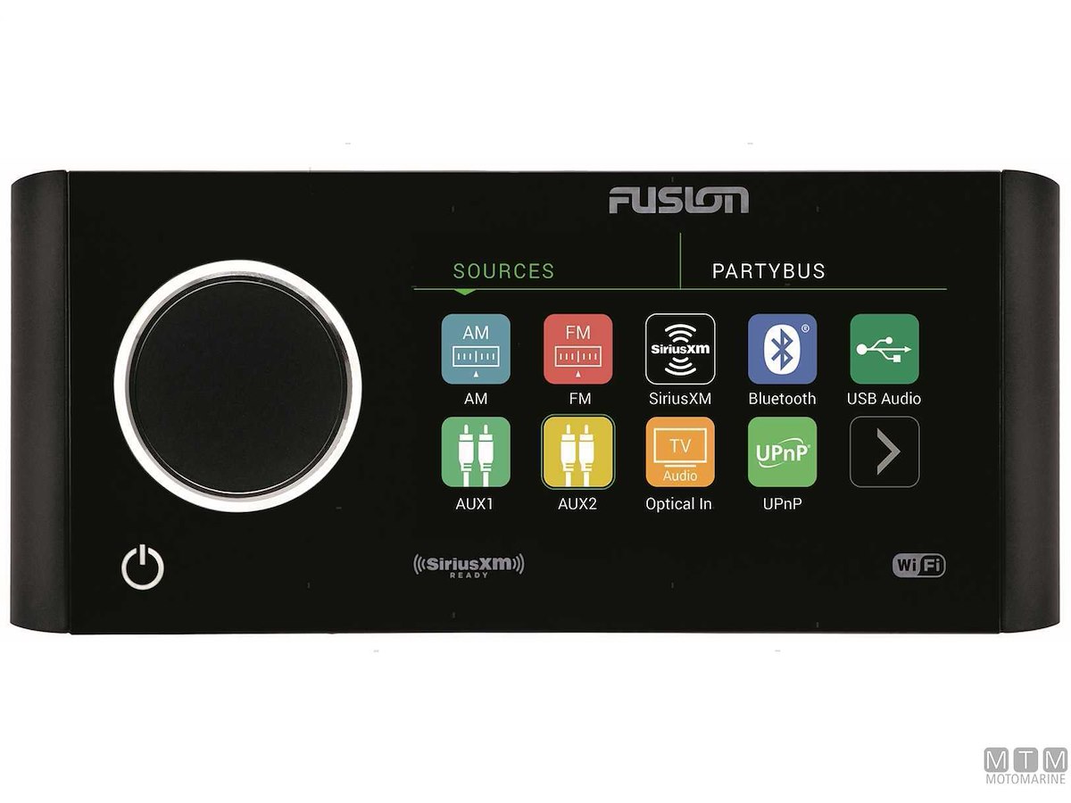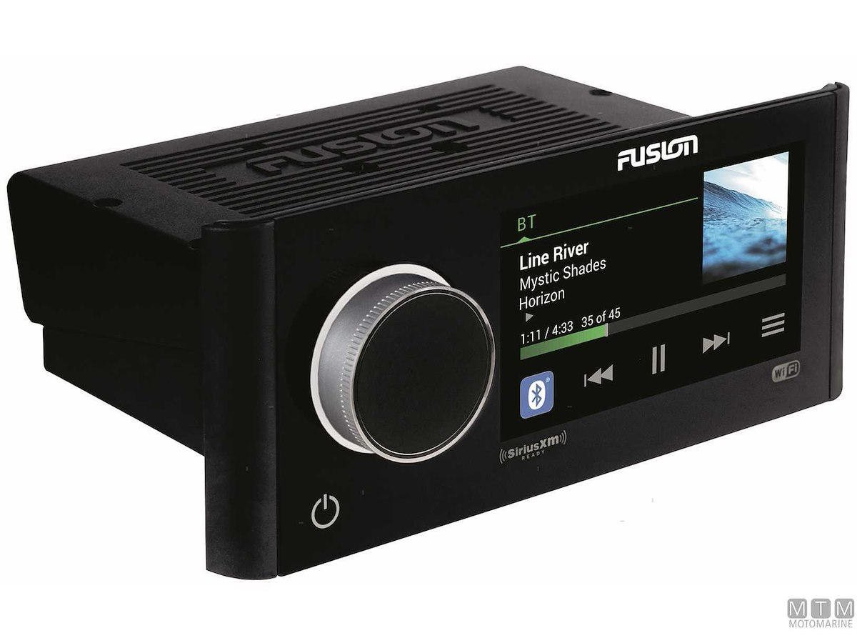 Stereo marino da cruscotto Fusion MS-RA770 con display touchscreen LCD Glass-Bonded. Radio FM/AM RDS DAB ready, presa USB e 2 ingressi AUX posteriori. Connettività Wi-Fi e Bluetooth integrato per audio streaming da smartphone o compatibili. Tramite la funzione Fusion-Link remote control si può controllare lo stereo anche da orologi Garmin o da dispositivi multifunzione NMEA2000. Dotato di tecnologia DSP (Digital Signal Processing) per ottimizzare il suono in tempo reale. Controllo indipendente delle impostazioni Multi-Zone per quattro zone audio separate. Impermeabile IPx7, montaggio a incasso oppure a filo. Il kit retrofit adatta lo stereo su fori preesistenti delle serie 650/750/755.