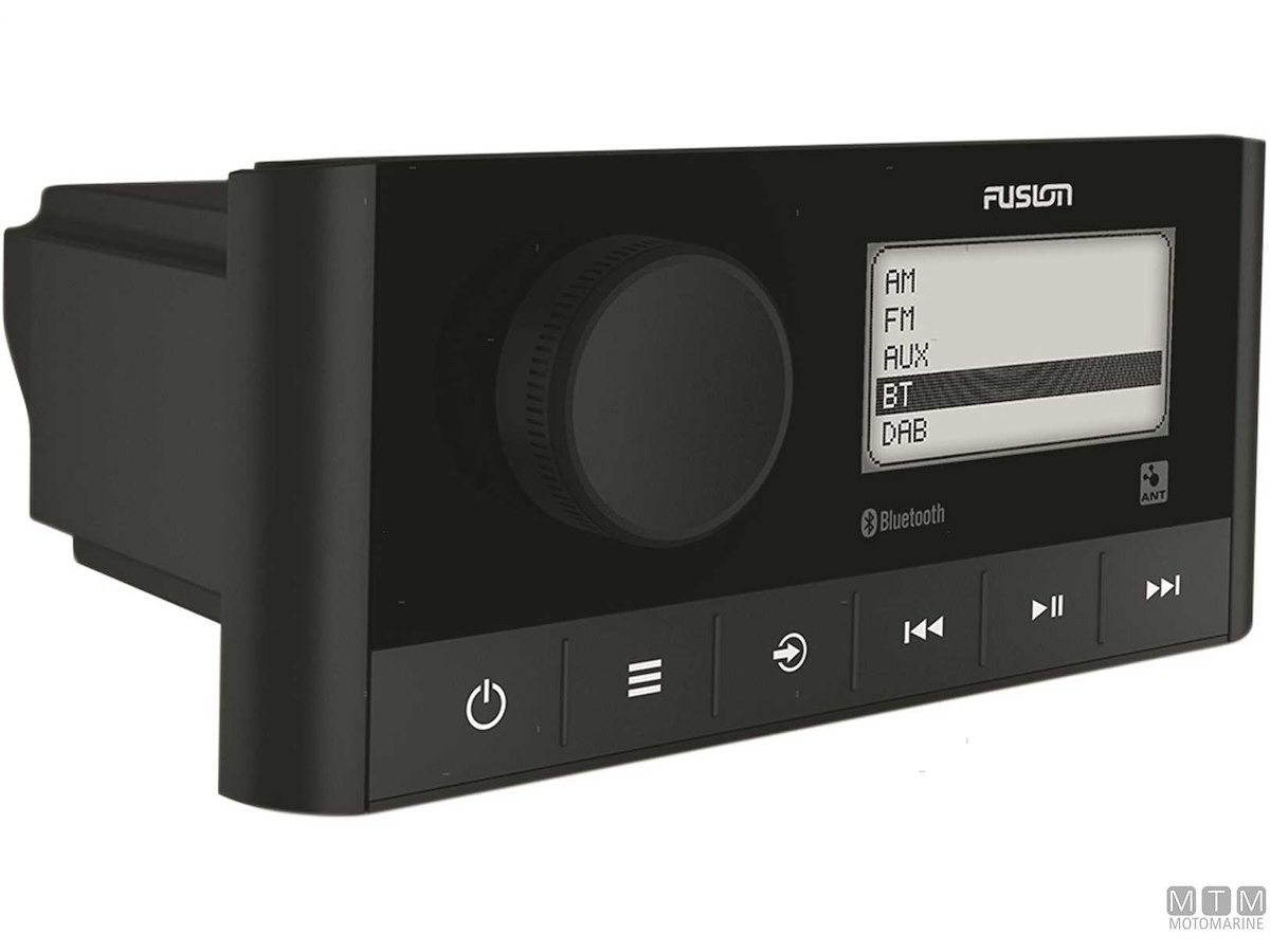 Stereo marino da cruscotto Fusion MS-RA60 impermeabile IPx7 con display LCD retroilluminato. Radio FM/AM RDS DAB ready, ingresso AUX posteriore e Bluetooth integrato per audio streaming da smartphone o compatibili. Tramite la funzione Fusion-Link remote control si può controllare lo stereo anche da orologi Garmin o da dispositivi multifunzione NMEA2000. Controllo indipendente delle impostazioni Multi-Zone per due zone audio separate. Il kit retrofit adatta lo stereo su fori preesistenti delle radio da cruscotto standard tipo DIN.