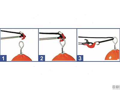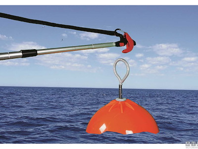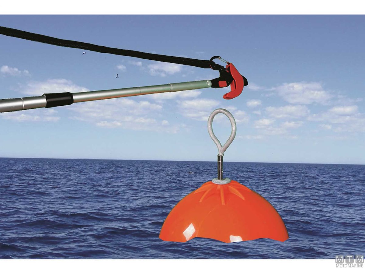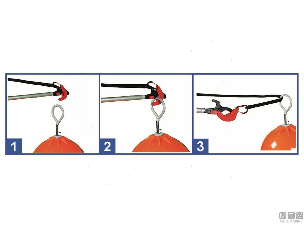 Gancio da ormeggio multifunzione Scrubbis Catching che può essere usato come mezzo marinaio oppure come gancio per passare la cima d'ormeggio nell'occhio della boa oppure nel golfare della banchina. Composto da gancio e manico telescopico, che va acquistato separatamente.