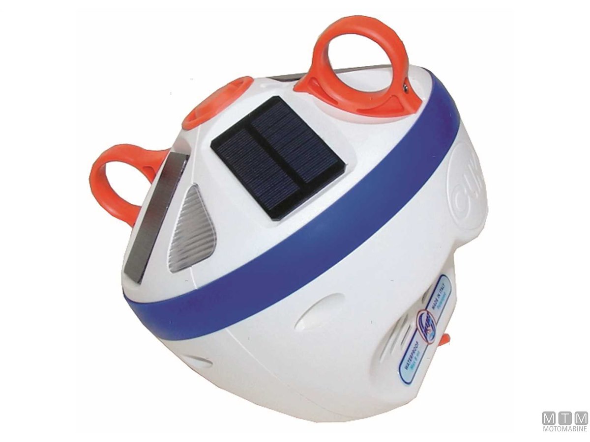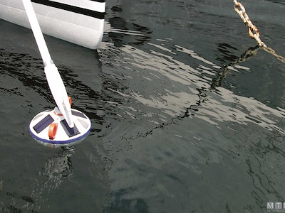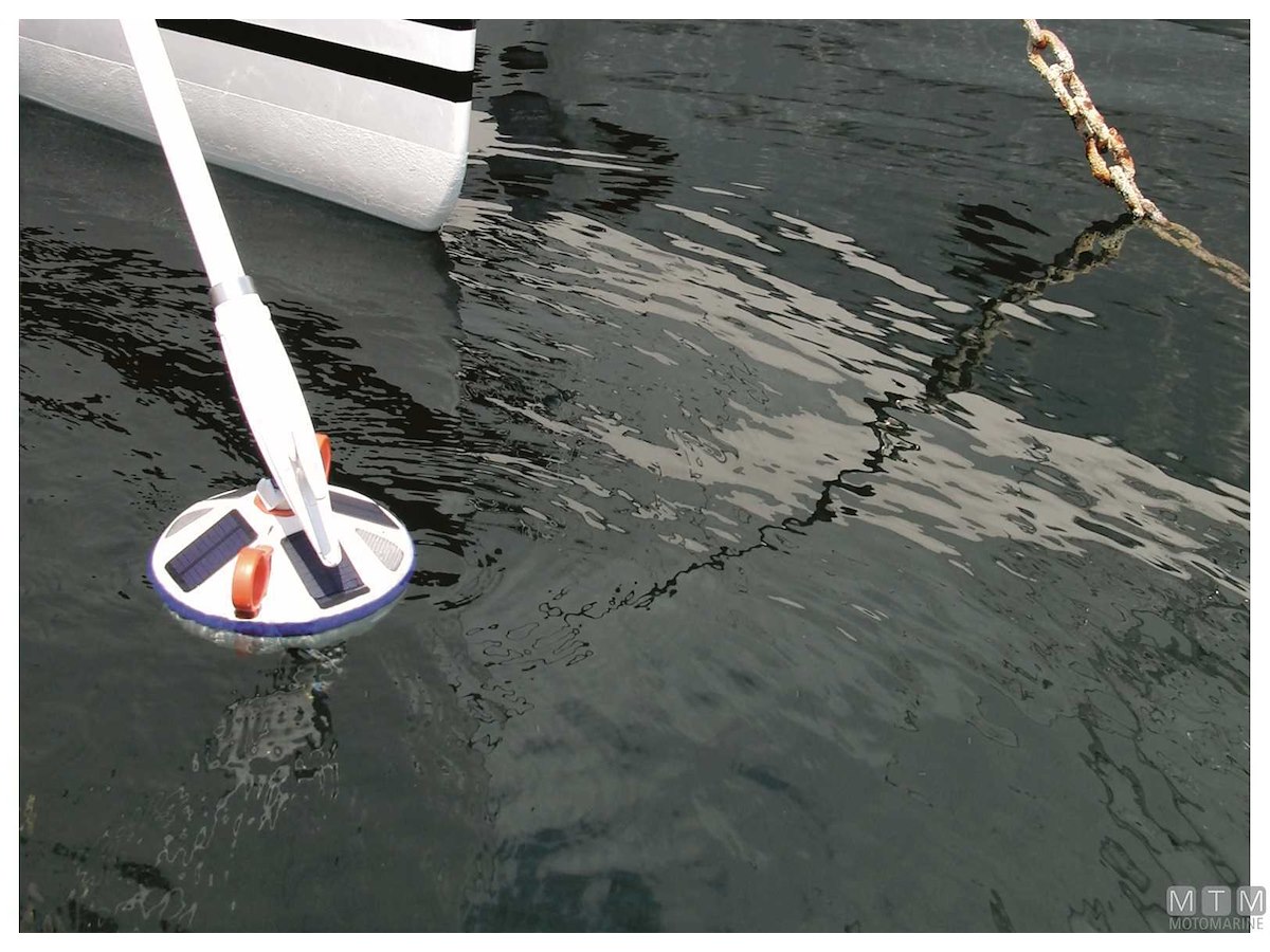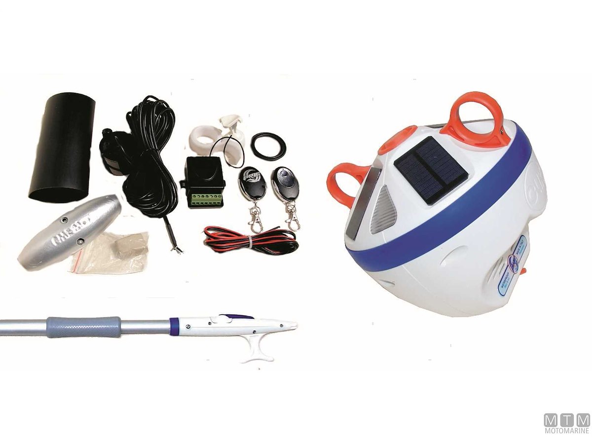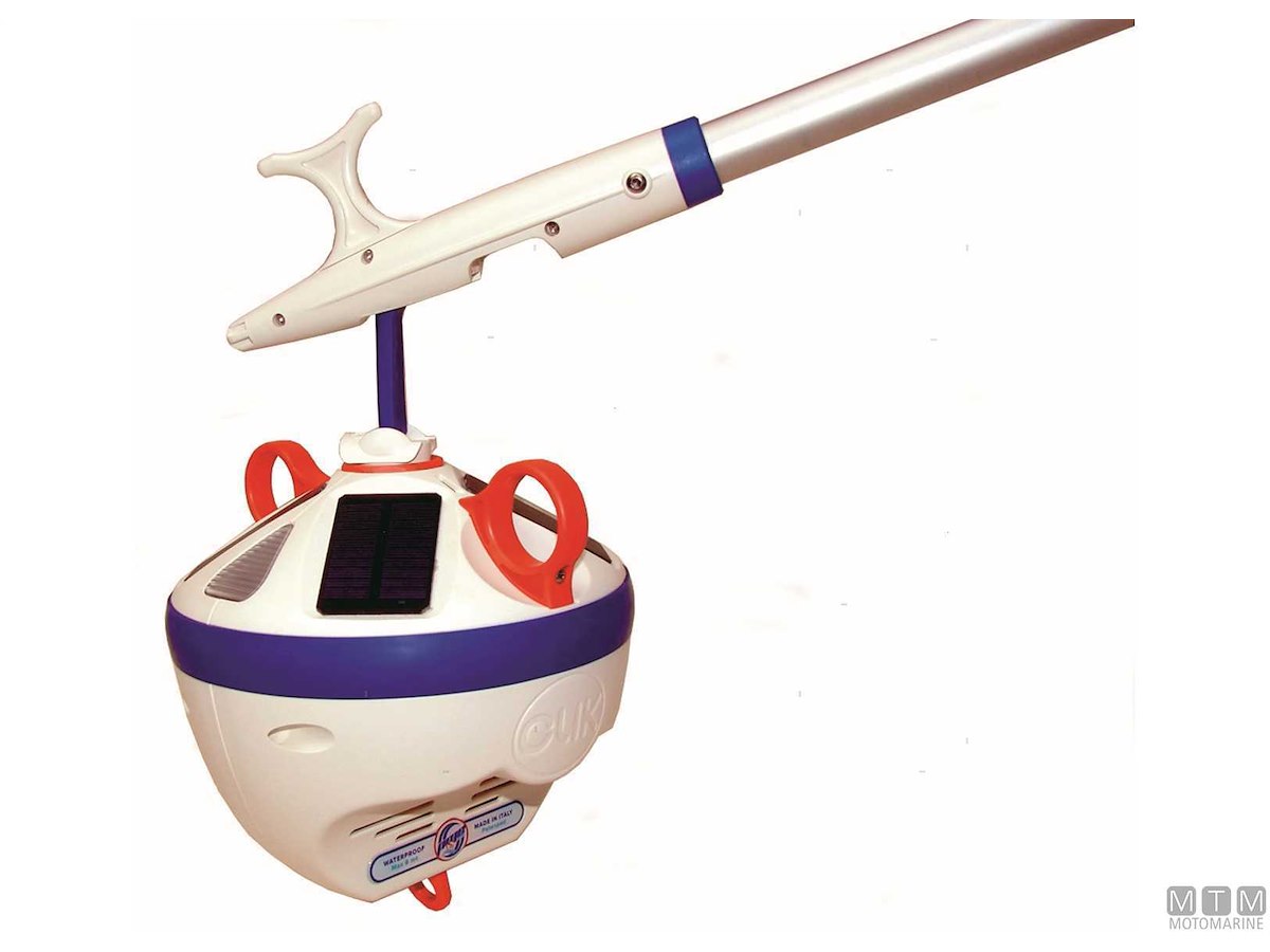 Gavitello autoaffondante con sistema di risalita radiocomandato. Non intralcia, non va in contatto con le eliche e recupera la cima d'ormeggio direttamente a prua senza farla scorrere manualmente da un'estremità all'altra della barca. Con illuminatori notturni e celle solari ad alta efficienza per la ricarica della batteria con autonomia fino a 100 cicli. Completo di mezzo marinaio magnetico, interruttore di comando da plancia e attuatore wireless. Profondità massima operativa 8 metri.