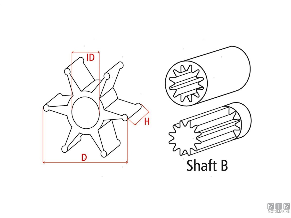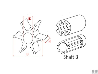 Giranti ricambio per pompe di raffreddamento motore e servizi di bordo. Neoprene: per acqua dolce e salata Nitrile: per sentina, oli e derivati