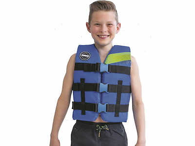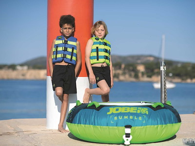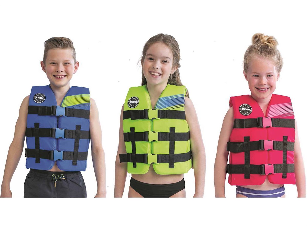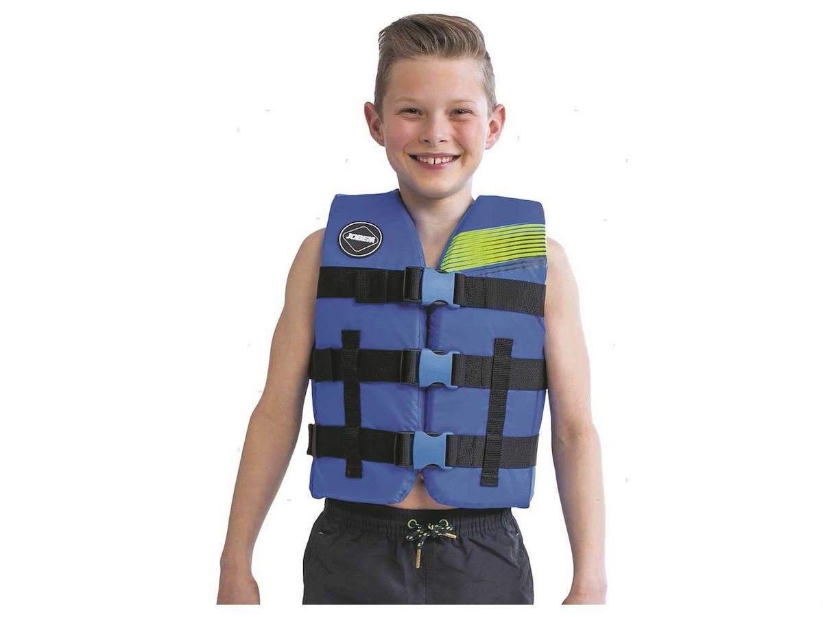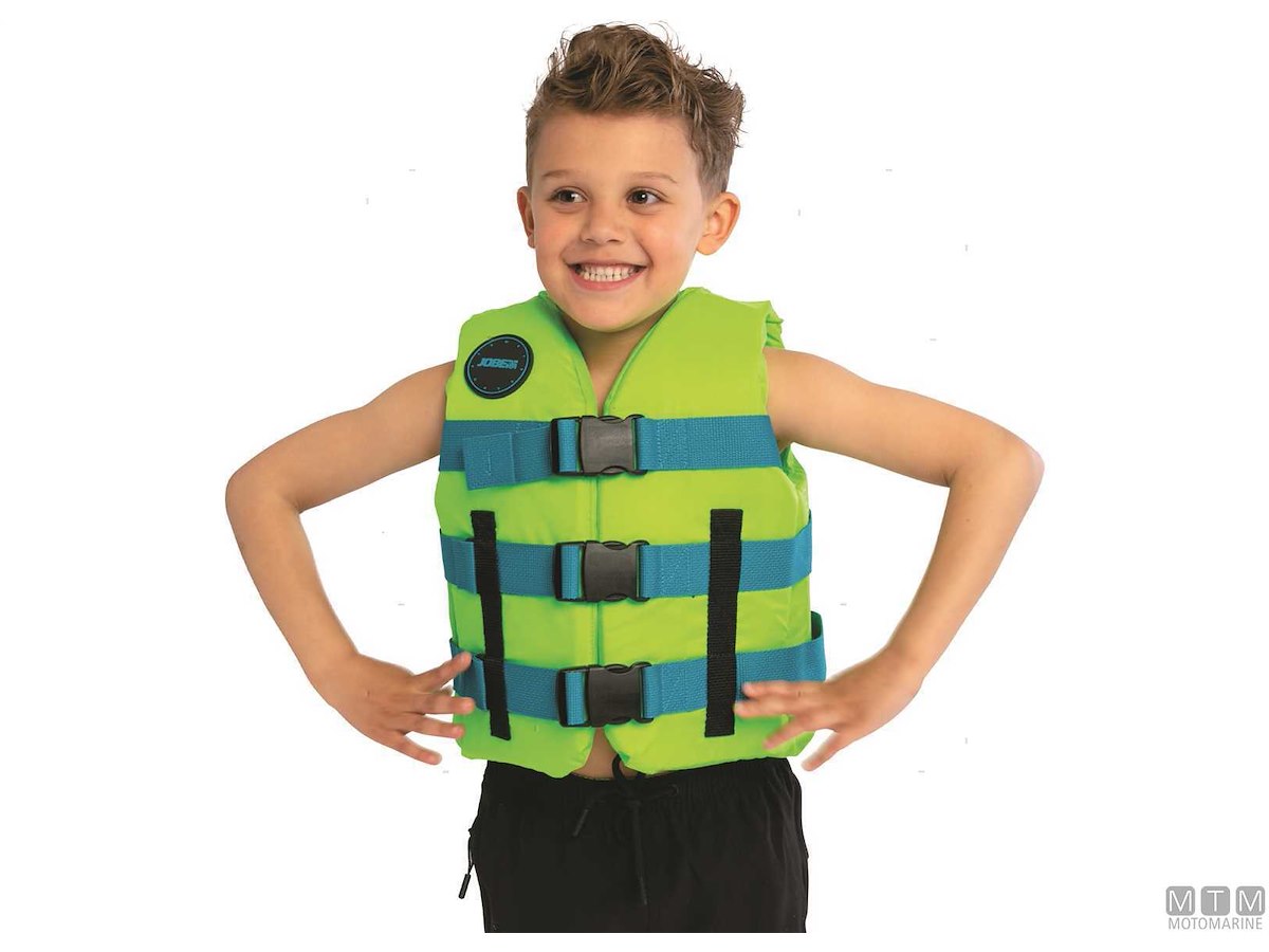 Giubbetto Jobe da 50N approvato ISO EN12402-5 per sport acquatici. Costruzione in leggera schiuma PE rivestita in resistente tessuto di Nylon con sistema di drenaggio dell'acqua. Taglia universale per bambini con cinghie regolabili e chiusura con fibbie YKK a sgancio rapido. 50N - Aiuto al galleggiamento (non è un giubbetto salvagente). Solo per persone che sanno nuotare. Da usare in prossimità della costa.